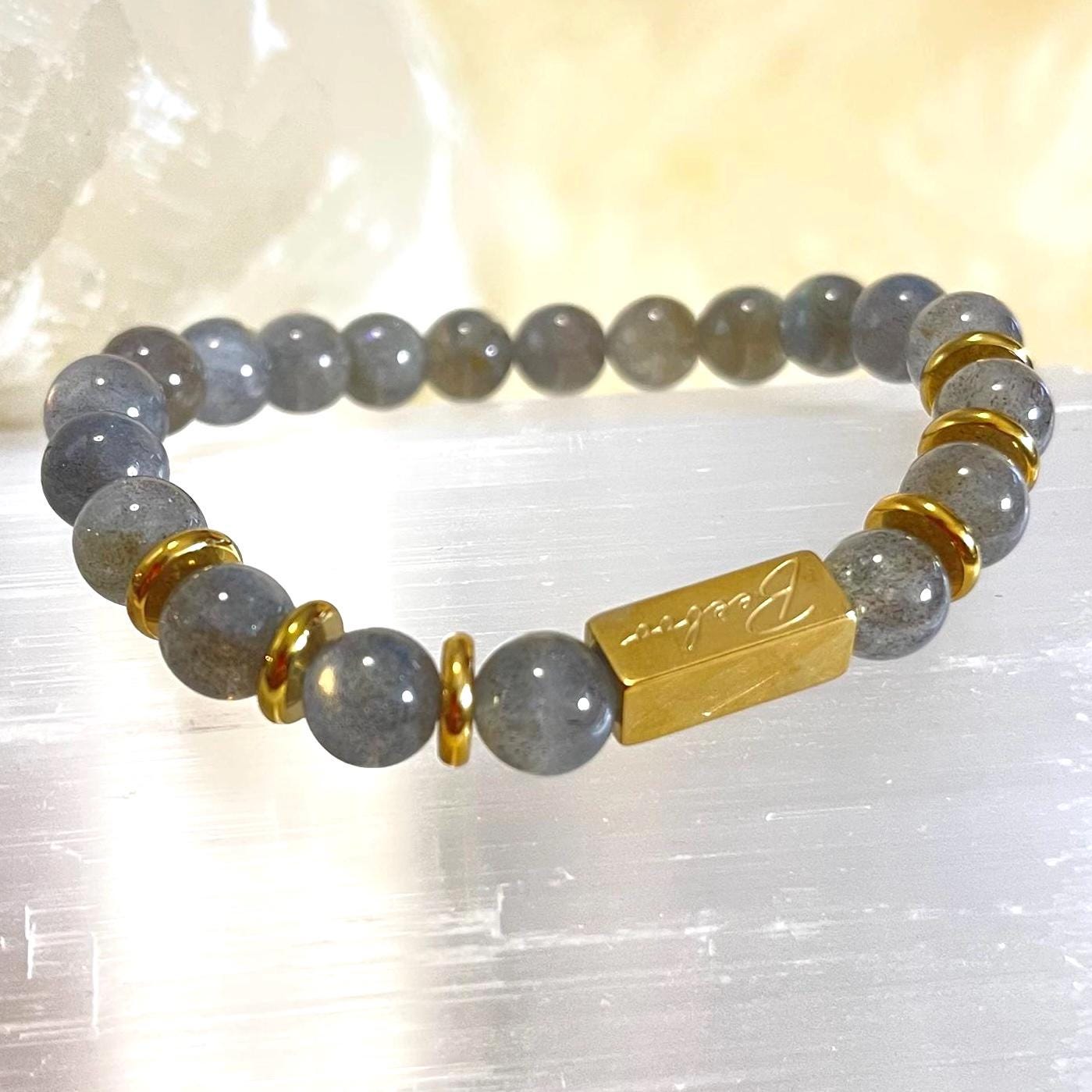 Labradorite is a favorite for those who want jewelry that’s both beautiful and meaningful. The stone’s natural shimmer gives a modern, luxe look that pairs perfectly with the warmth of gold filled details. The 8mm bead size is ideal for everyday wear—noticeable without being bulky—making it easy to wear solo, stack with other gemstone bracelets, or pair with a watch.