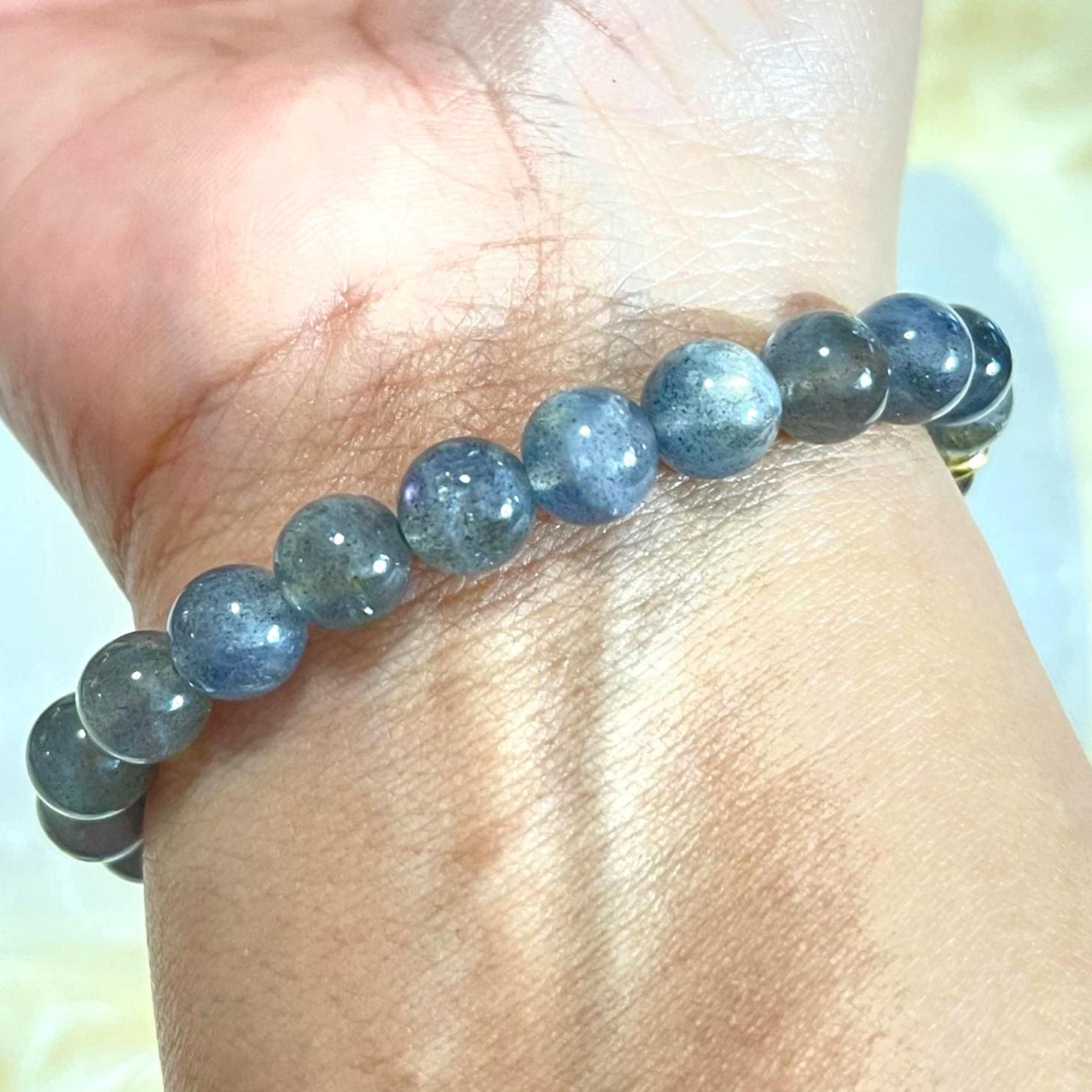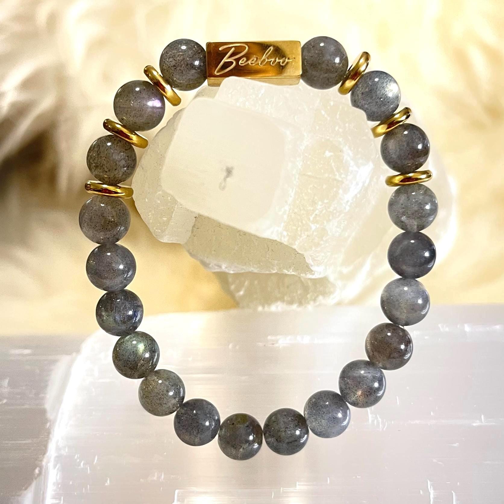 • Natural Labradorite (8mm beads): Each bead may show unique flashes and natural variations.