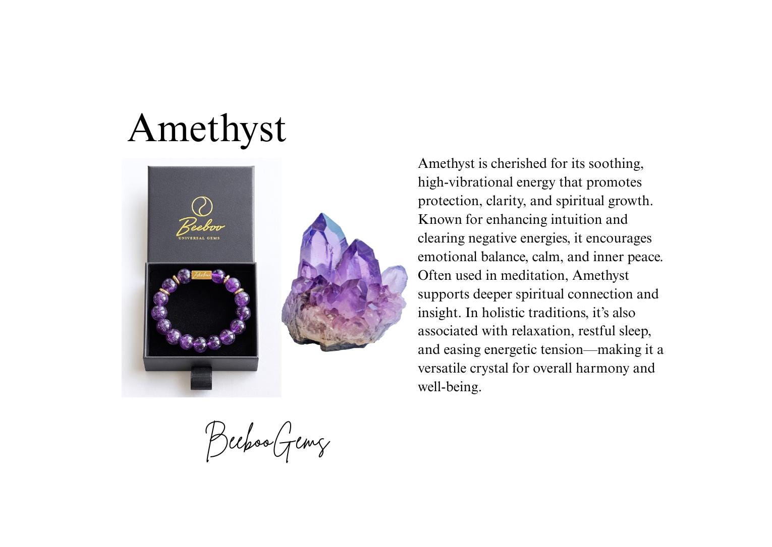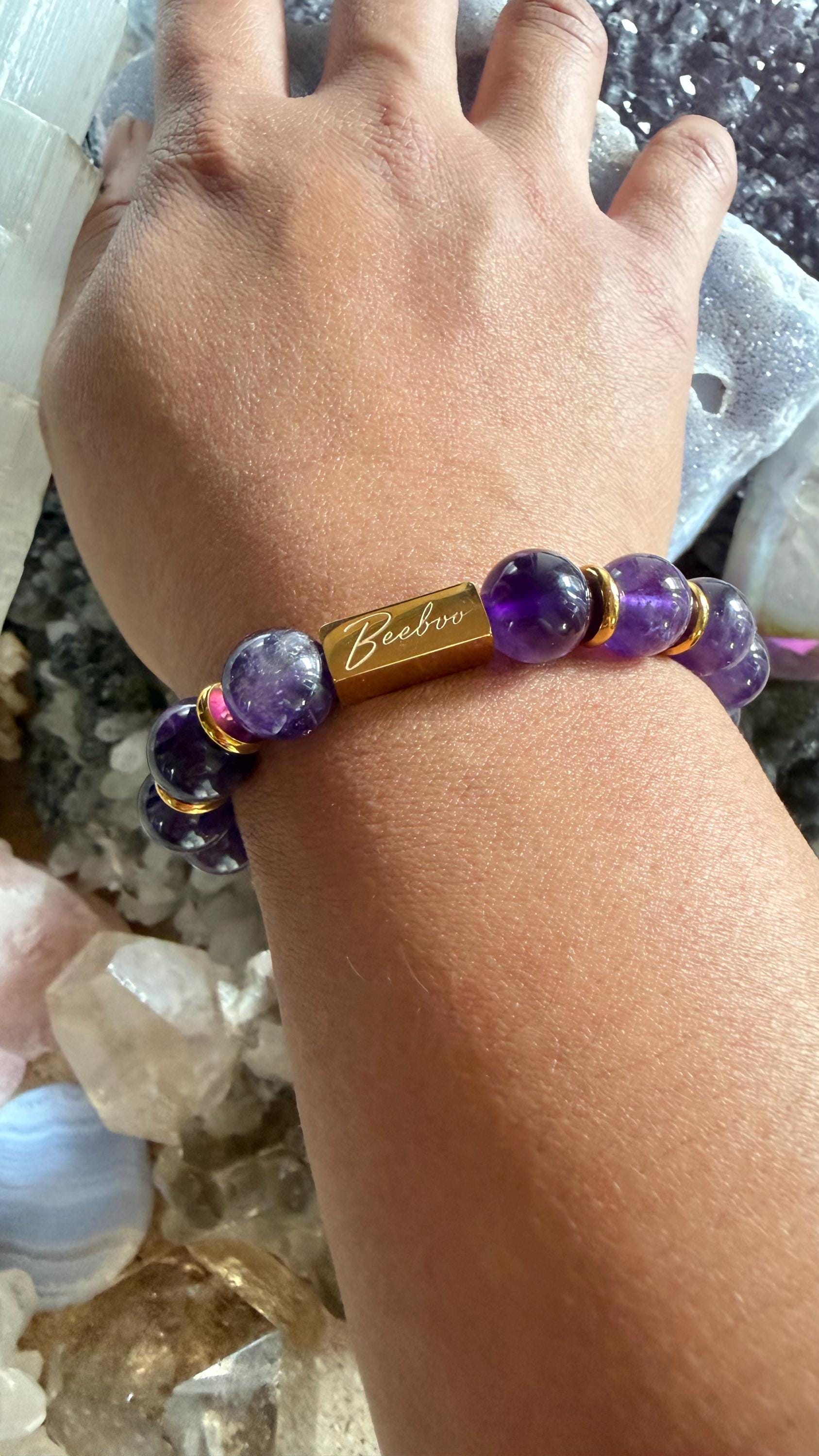 Each bracelet is handcrafted with smooth, high-quality amethyst beads and strung on a strong elastic cord for comfortable, durable everyday wear. Your order arrives ready to gift in an elegant box.