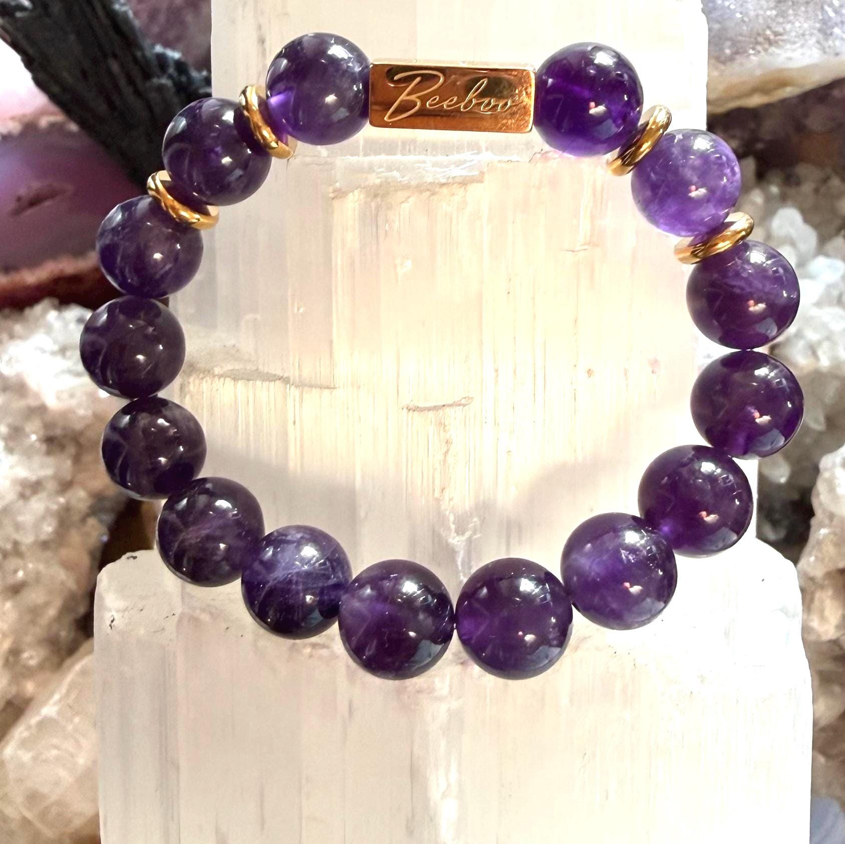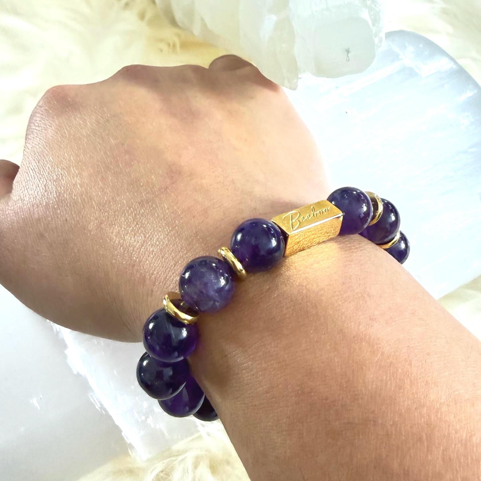 Each bracelet is handcrafted with smooth, high-quality amethyst beads and strung on a strong elastic cord for comfortable, durable everyday wear. Your order arrives ready to gift in an elegant box.