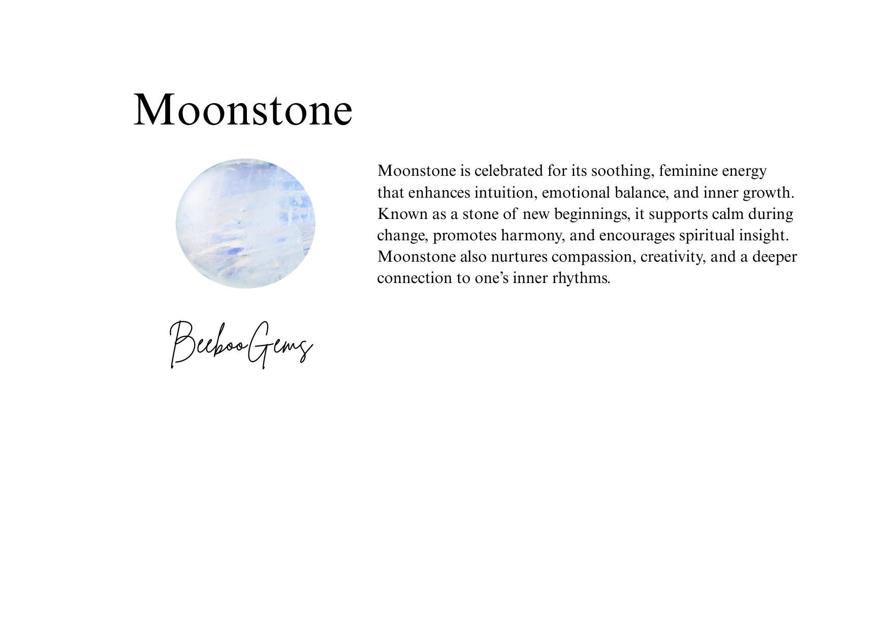 Moonstone is celebrated for its soft iridescent glow and its deep association with intuition emotional harmony and feminine strength. Often called the stone of new beginnings, Moonstone is believed to encourage clarity creativity and inner balance. Its gentle radiance offers a sense of calm and inspiration allowing you to move through your day with confidence and presence.
