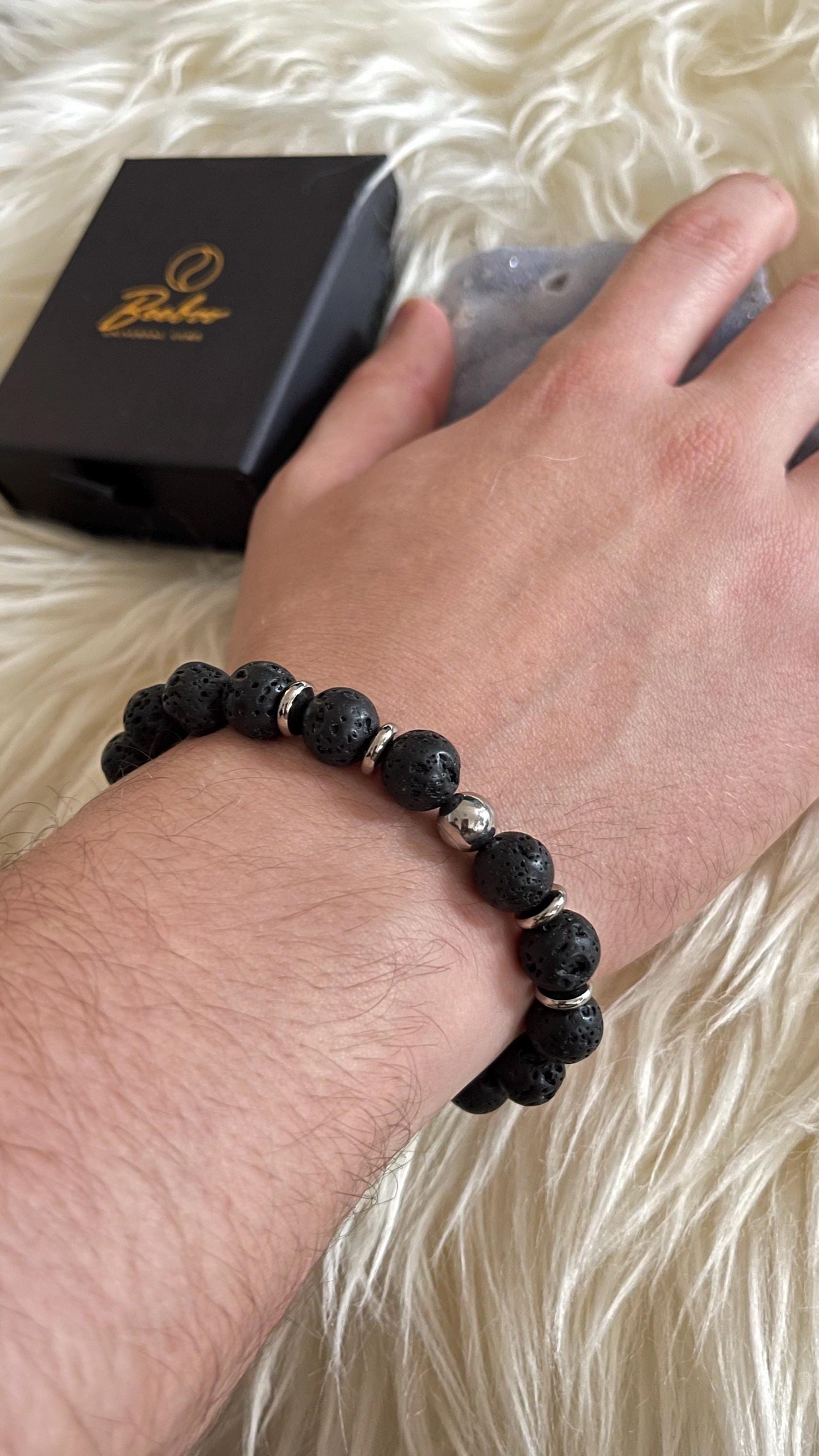 Embrace the natural power of the earth with this handcrafted Lava Stone Bracelet, designed to bring grounding energy, emotional stability, and a touch of minimalist style to your everyday life. Lava stone, also known as volcanic rock, is formed from molten lava that has cooled and solidified—making it one of the most powerful stones for strength, resilience, and transformation. Its naturally porous texture also makes it ideal for absorbing essential oils if you choose to use it for aromatherapy.