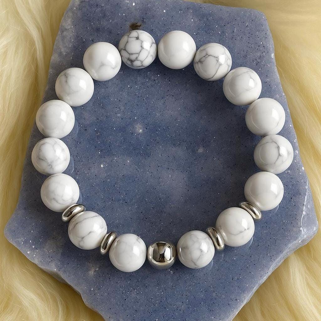 #HowliteBracelet #HowliteJewelry #HandmadeBracelet #CrystalBracelet #GemstoneBracelet #ElasticBracelet #CalmingStone #HealingCrystals #MindfulnessJewelry #SpiritualJewelry #GiftForHer #GiftForHim #CrystalHealing #NaturalStoneBracelet #EnergyBracelet #StressReliefJewelry #MinimalistJewelry #BohoBracelet #MeditationTools #CrystalGifts #EtsySeller #HandmadeWithLove #GemstoneGifts #IntentionalLiving #WellnessJewelry