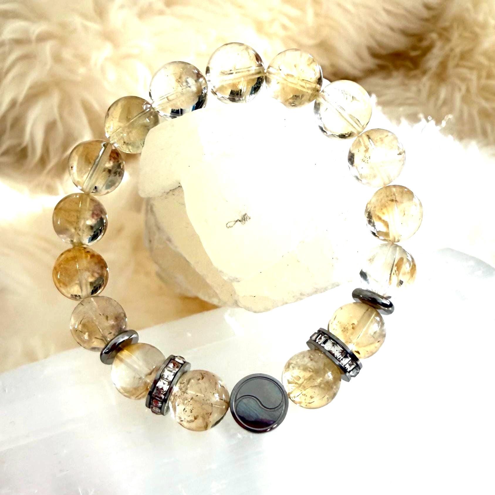 ✨ Natural Citrine Bracelet 10mm with Rhinestone & Stainless Steel | Abundance • Prosperity • Positive Energy ✨