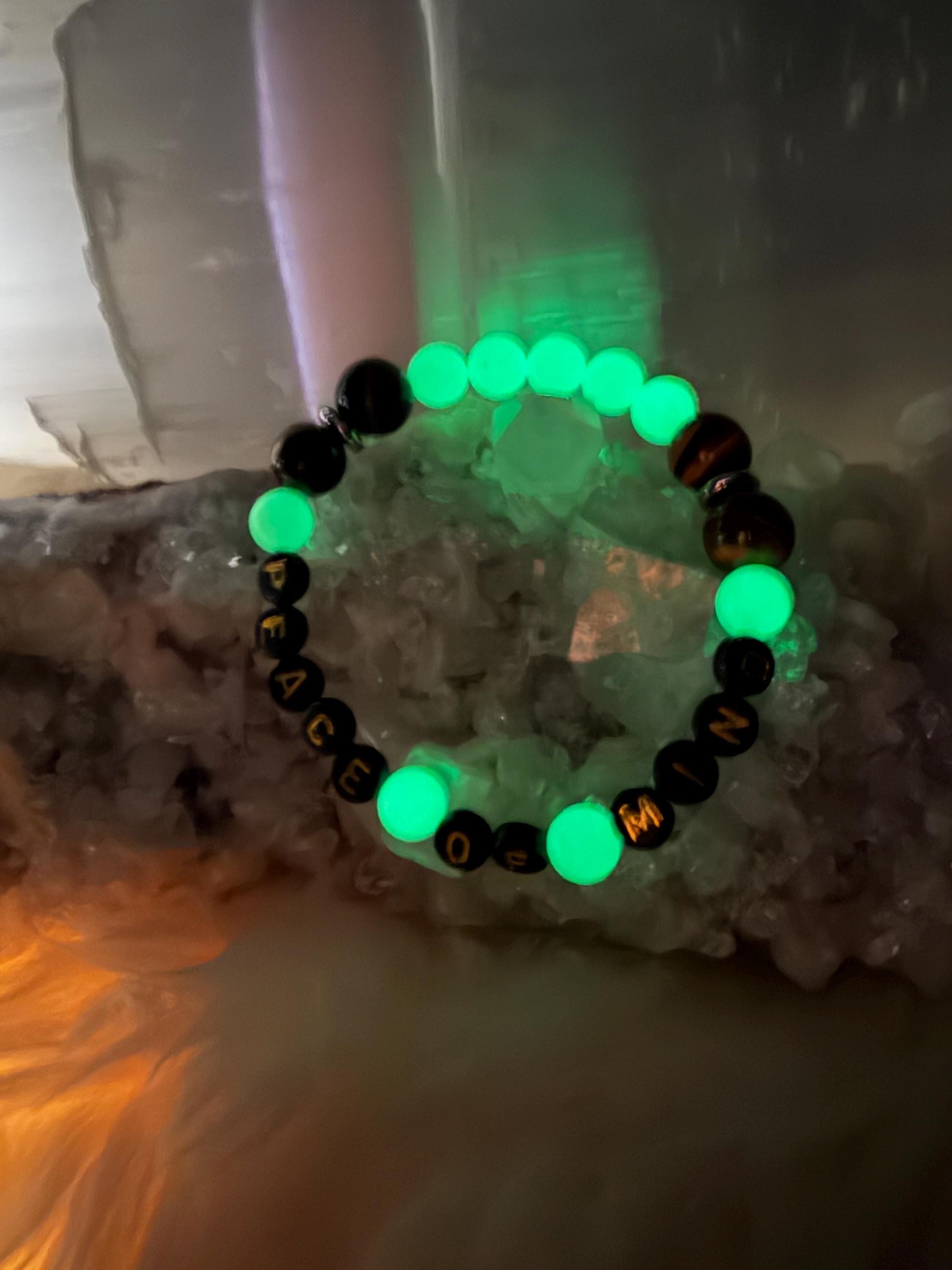 Crafted with care, this lucky charm bracelet pairs soothing crystal energy with a soft, radiant glow that comes alive at night. Wear it during meditation, journaling, or your everyday routine as a wearable affirmation—your goals, your light, your story.