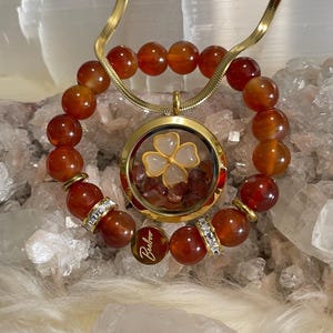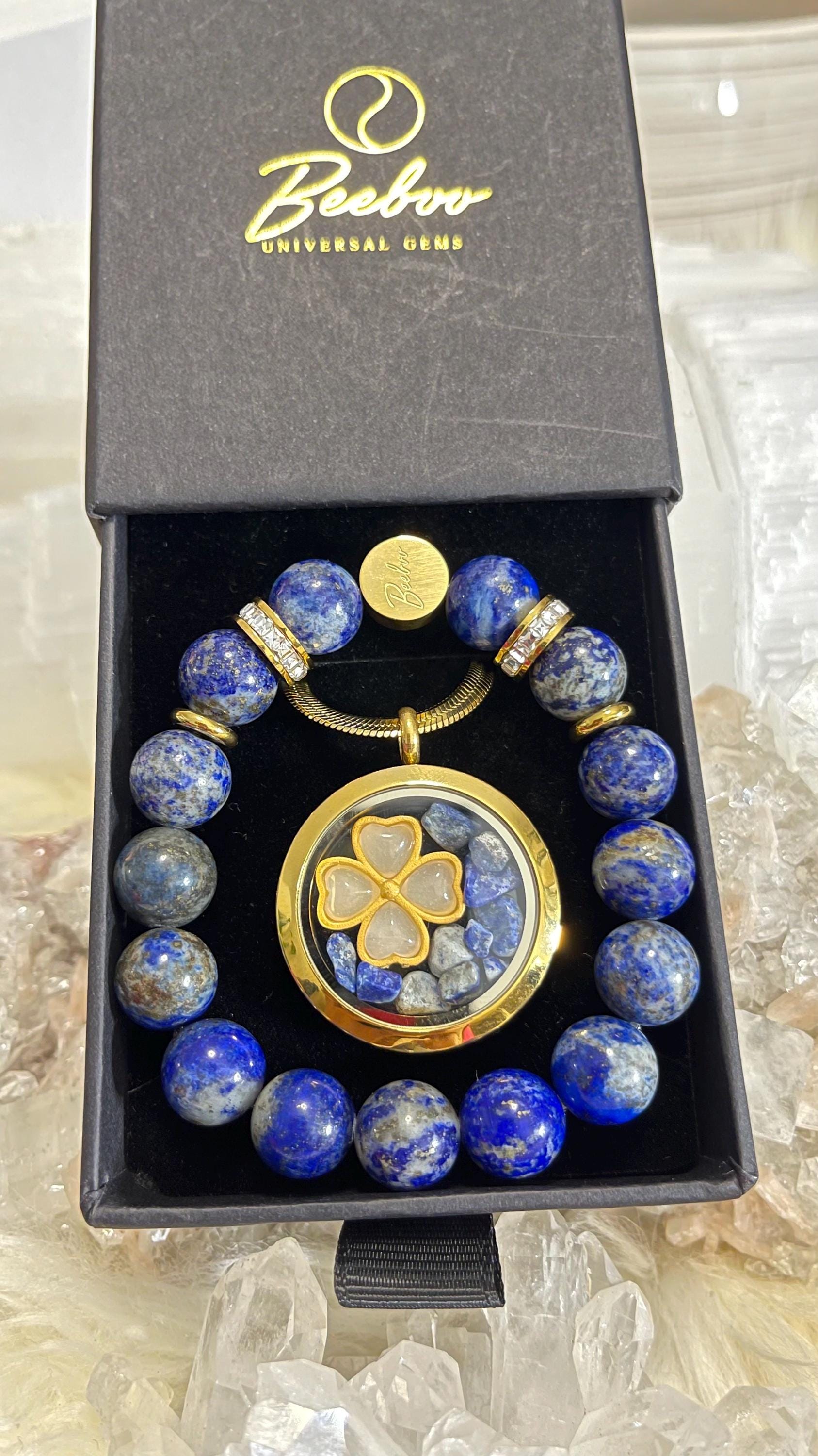 Bracelet: 10mm Lapis Lazuli stone Necklace (Pendant): 30mm Cat’s eye Clover and Lapis Lazuli stone