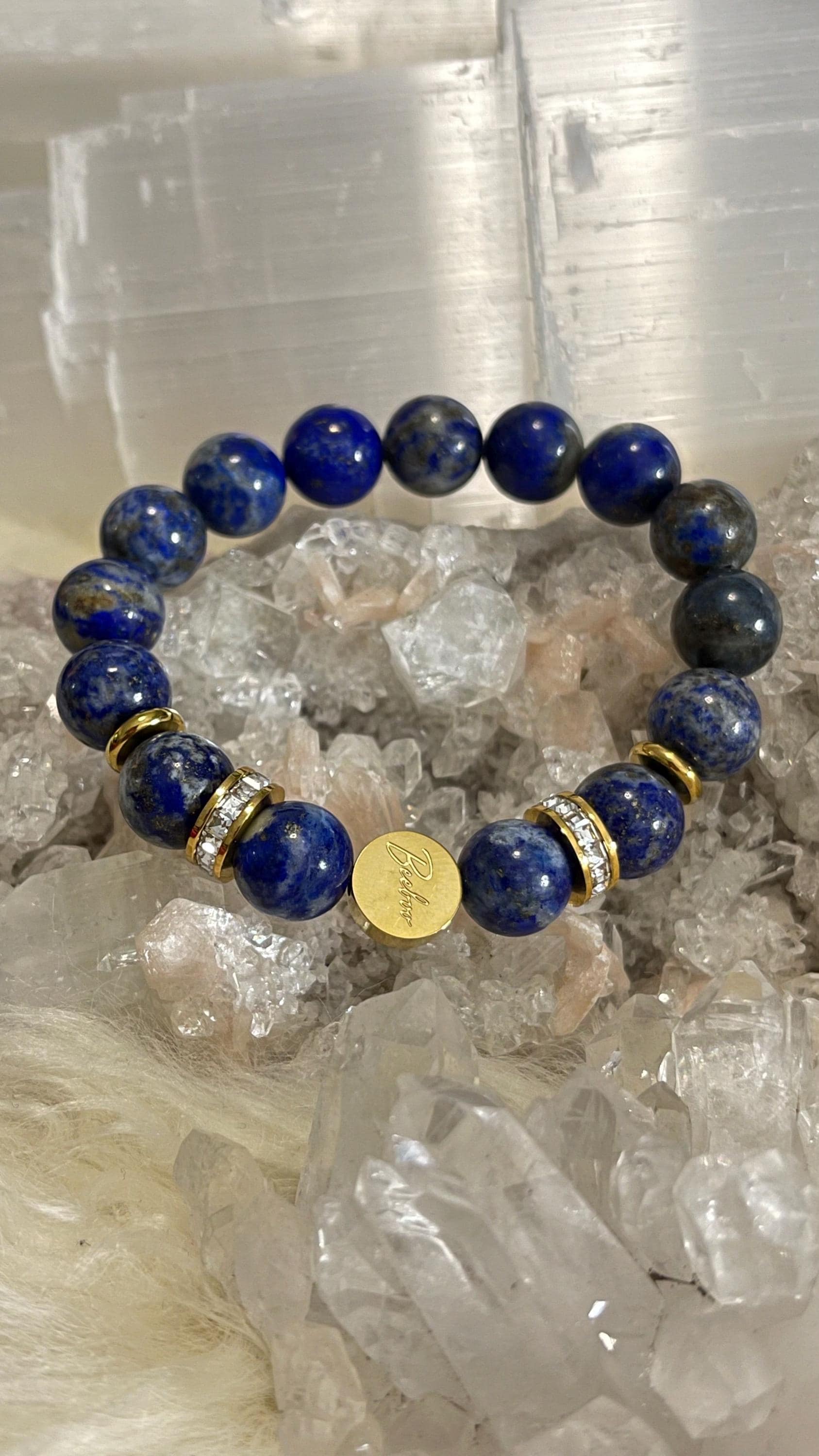 Refined, meaningful, and beautifully bold—this Lapis Lazuli Jewelry Set for Virgo is made to match your calm confidence and thoughtful style. Handcrafted with natural lapis lazuli gemstone, accented with gold vermeil and sparkling rhinestones, this set adds a polished pop of deep celestial blue. The bracelet is made with a strong elastic cord for a comfy slip-on fit that’s ideal for everyday elegance.