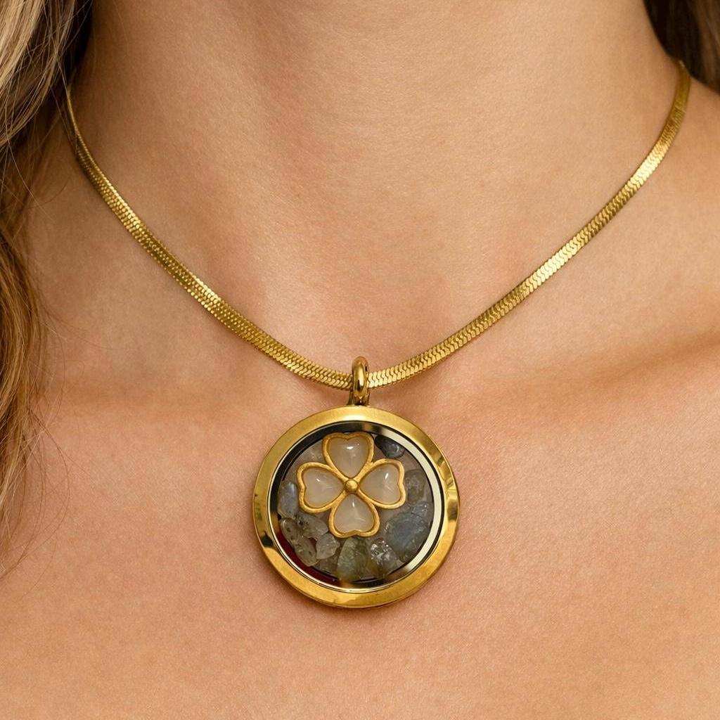 Necklace (Pendant) : 30mm Cat’s Eye Clover and Labradorite Stones