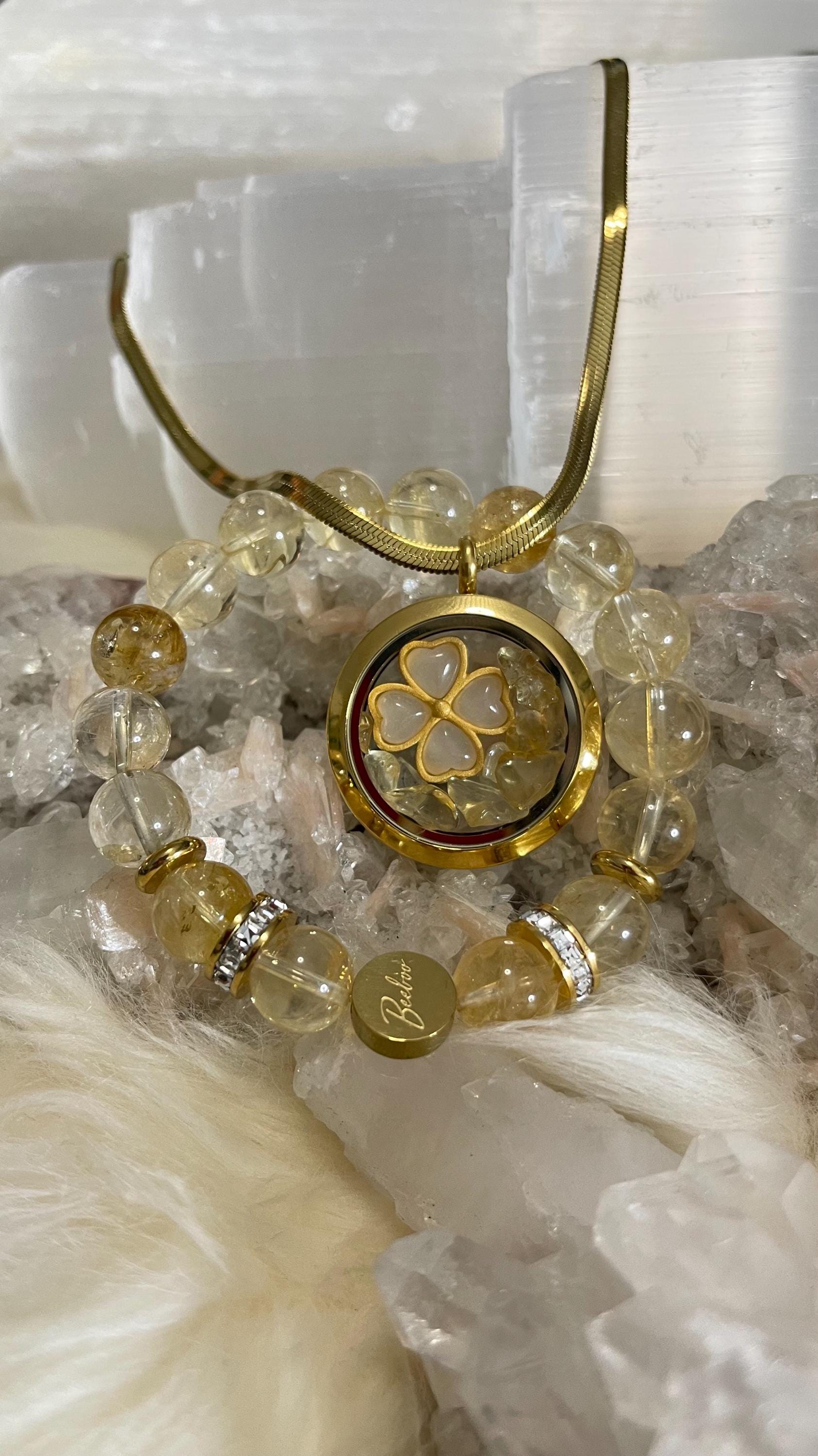 Bold, sunny, and made for adventure—this Citrine Jewelry Set for Sagittarius is designed to match your free-spirited fire and love of the bright side. Handcrafted with natural citrine gemstone in warm golden tones, this set is finished with gold vermeil accents and sparkling rhinestones for a radiant, luxe glow. The bracelet is made with a strong elastic cord for an easy slip-on fit that’s comfortable, secure, and perfect for everyday wear.