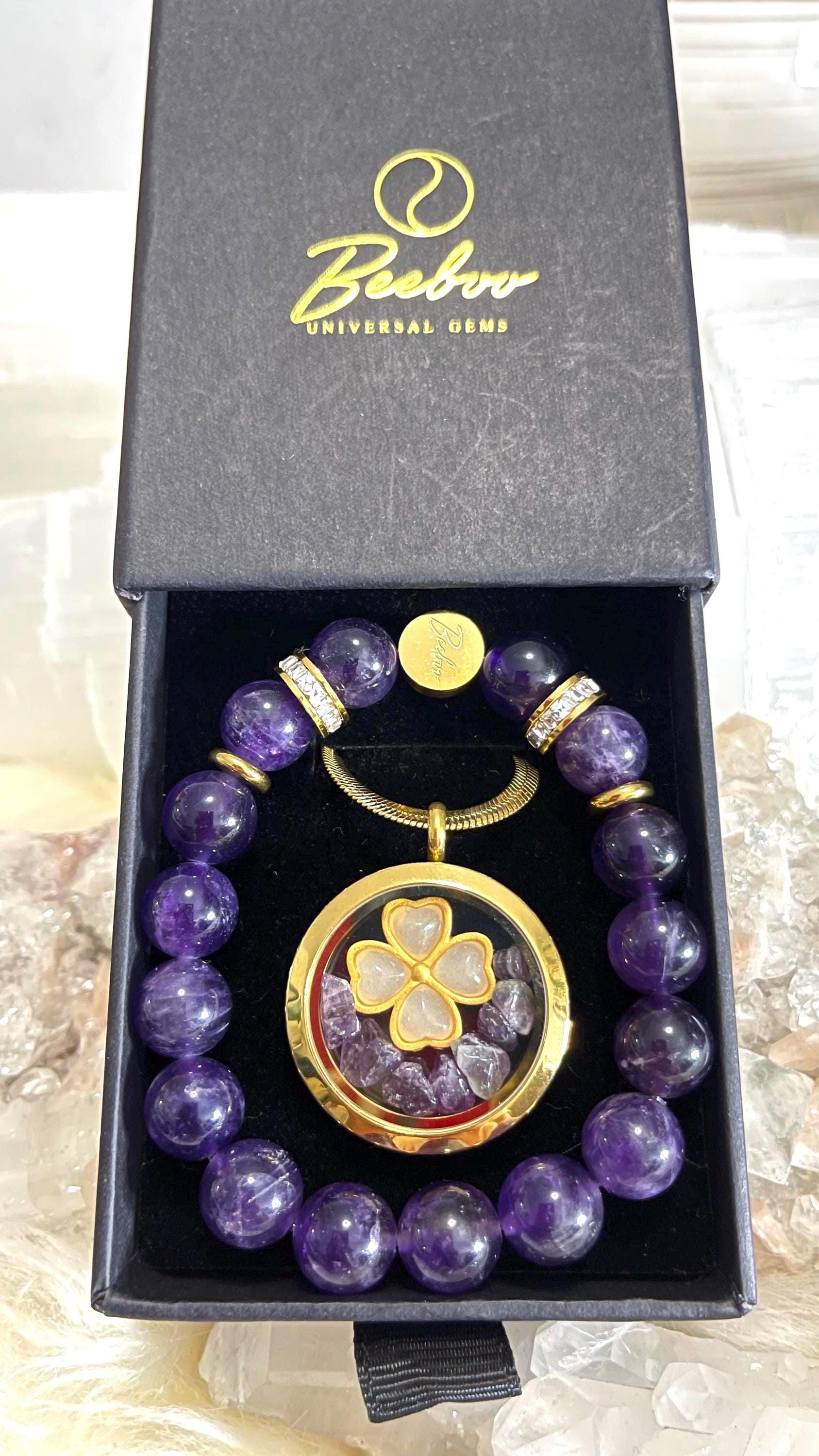 Dreamy, soothing, and effortlessly elegant—this Amethyst Jewelry Set for Pisces is made for intuitive hearts and artistic souls. Handcrafted with natural amethyst gemstone in rich violet hues, this set is finished with gold vermeil accents and sparkling rhinestones for a refined touch of celestial shimmer. The bracelet is strung on a strong elastic cord for a comfortable slip-on fit that’s secure and perfect for daily wear.