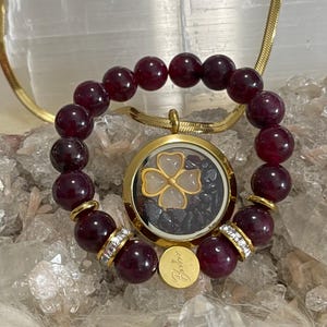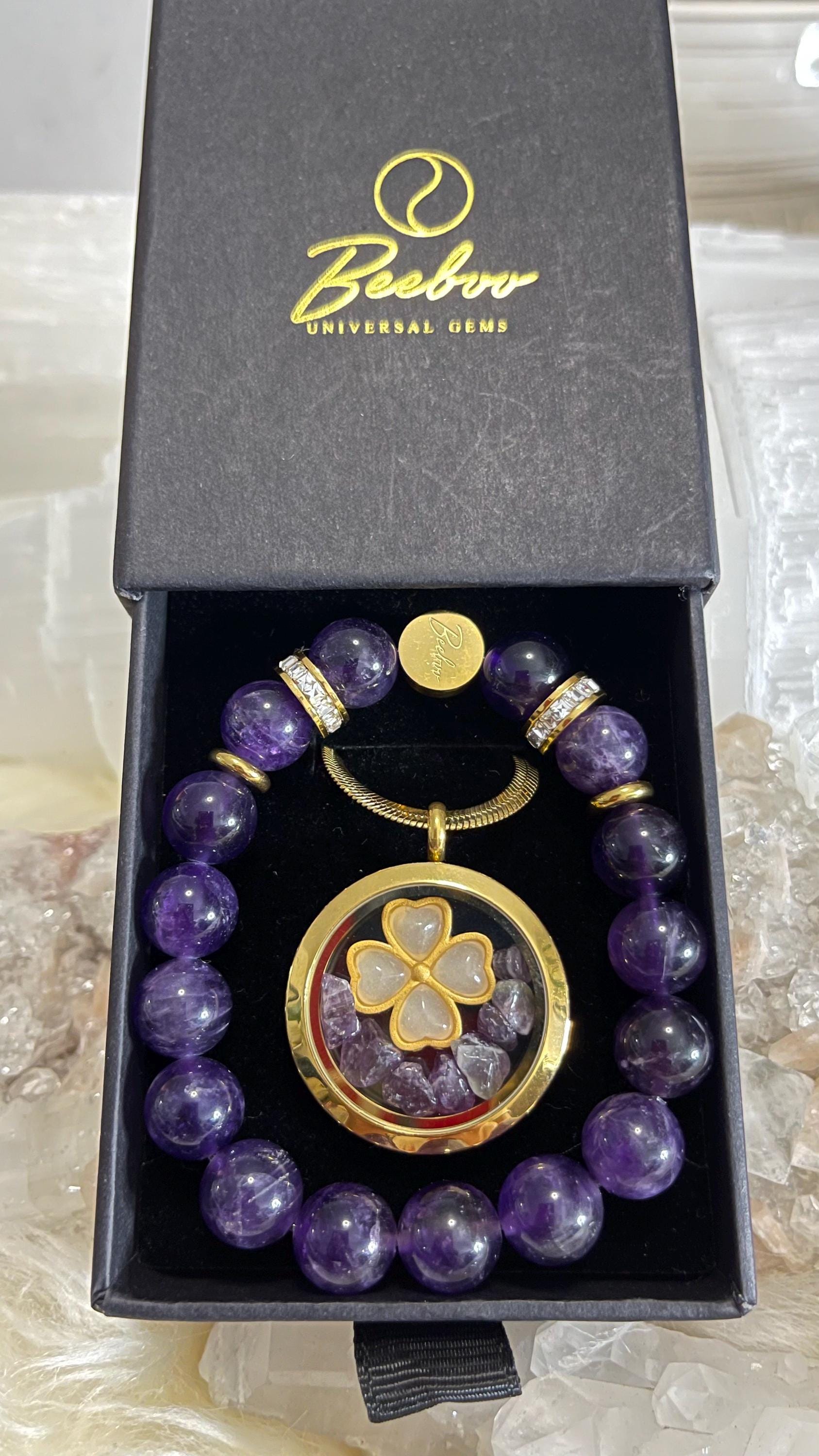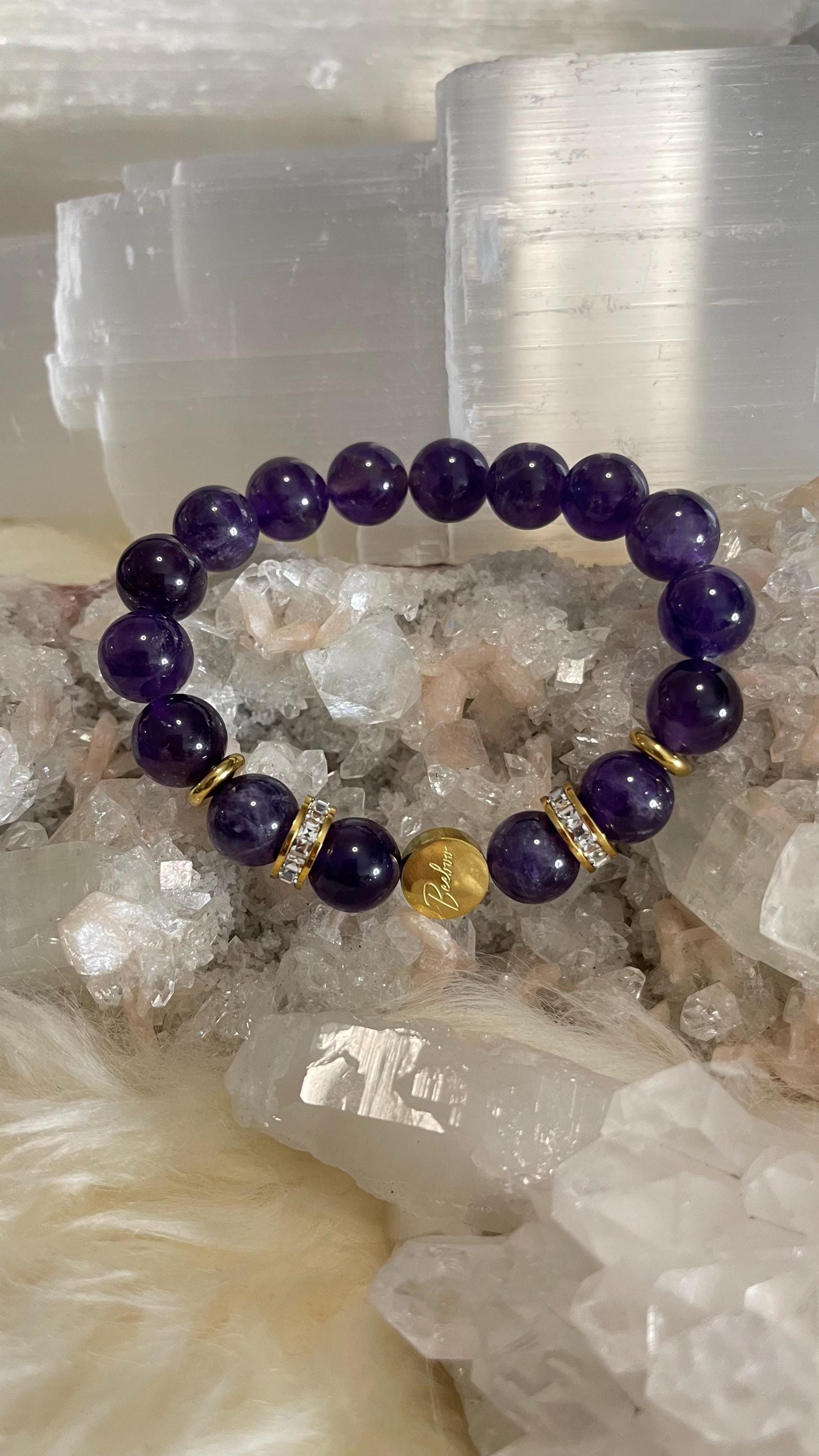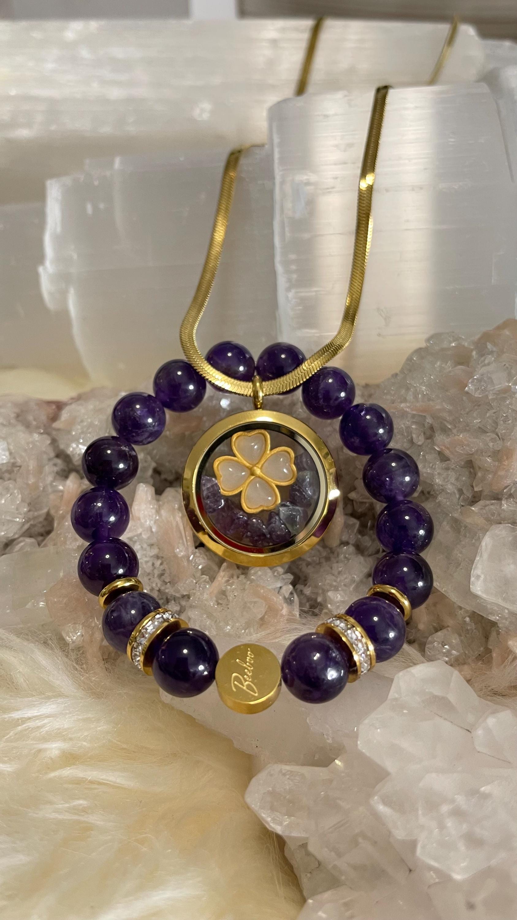 Dreamy, soothing, and effortlessly elegant—this Amethyst Jewelry Set for Pisces is made for intuitive hearts and artistic souls. Handcrafted with natural amethyst gemstone in rich violet hues, this set is finished with gold vermeil accents and sparkling rhinestones for a refined touch of celestial shimmer. The bracelet is strung on a strong elastic cord for a comfortable slip-on fit that’s secure and perfect for daily wear.