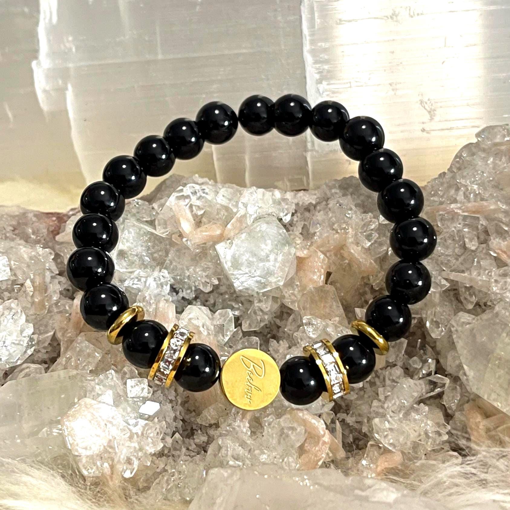 Mysterious, powerful, and effortlessly chic—this Tourmaline Jewelry Set for Scorpio is designed for deep souls and bold style. Handcrafted with natural tourmaline gemstone (each piece uniquely beautiful), this set is finished with gold vermeil accents and sparkling rhinestones for a luxe, magnetic glow. The bracelet is made with a strong elastic cord for an easy slip-on fit that stays comfortable and secure all day.