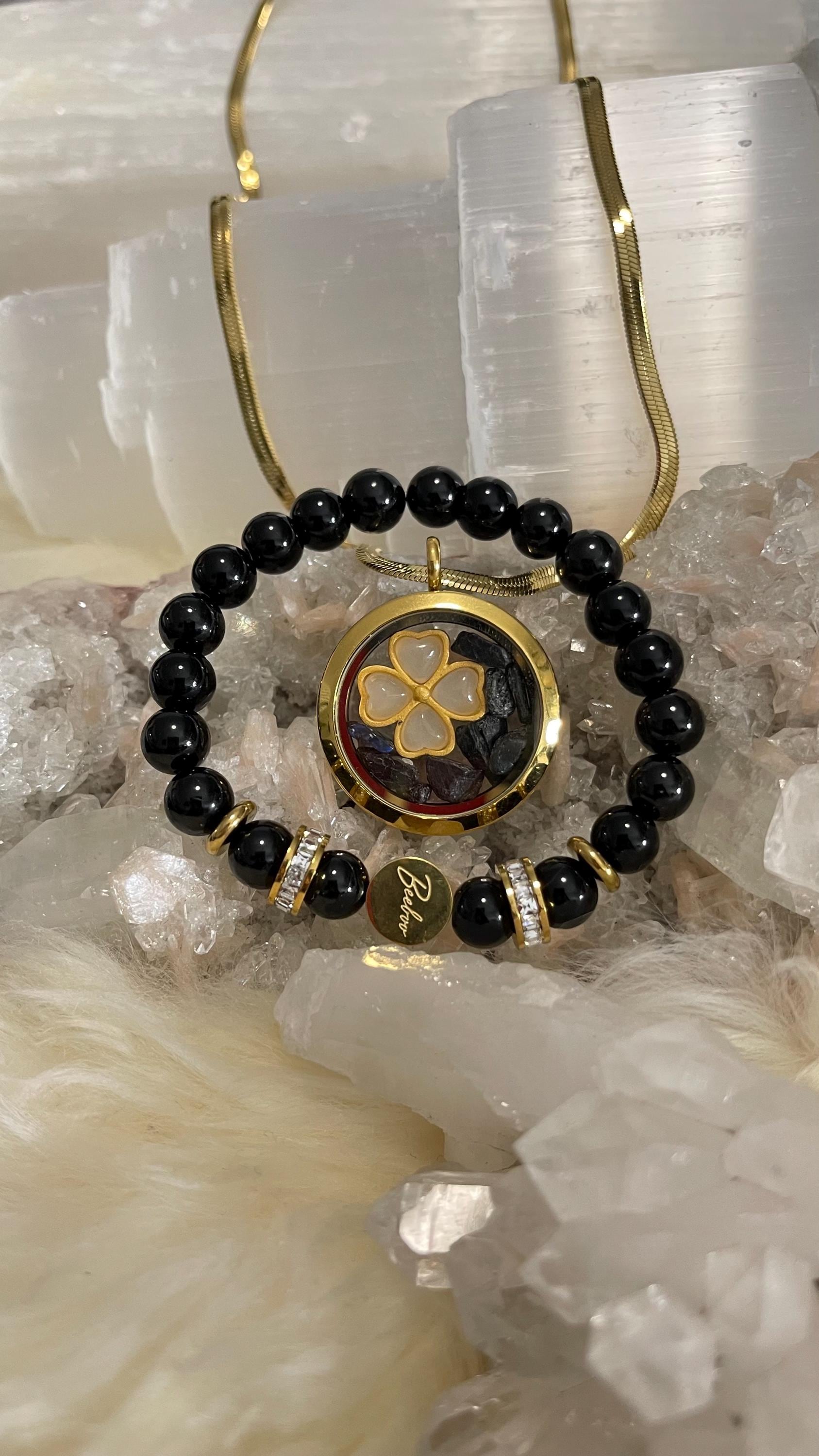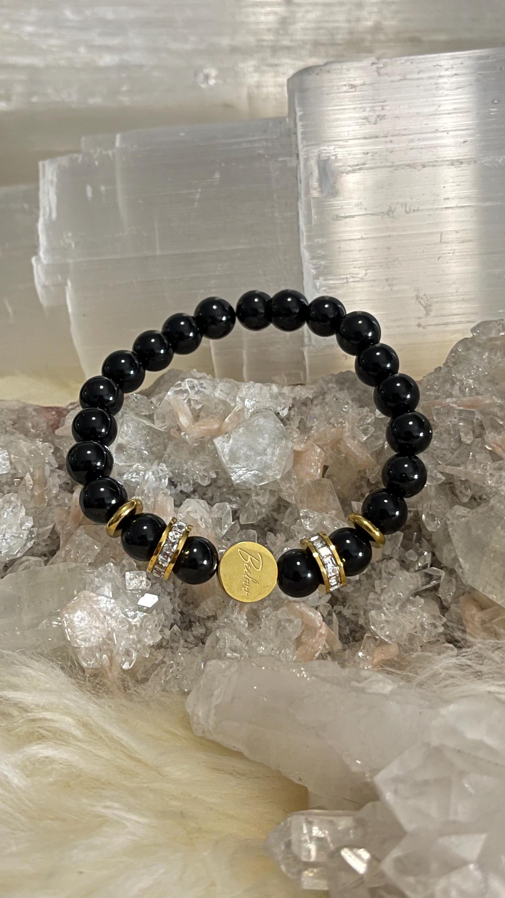Mysterious, powerful, and effortlessly chic—this Tourmaline Jewelry Set for Scorpio is designed for deep souls and bold style. Handcrafted with natural tourmaline gemstone (each piece uniquely beautiful), this set is finished with gold vermeil accents and sparkling rhinestones for a luxe, magnetic glow. The bracelet is made with a strong elastic cord for an easy slip-on fit that stays comfortable and secure all day.