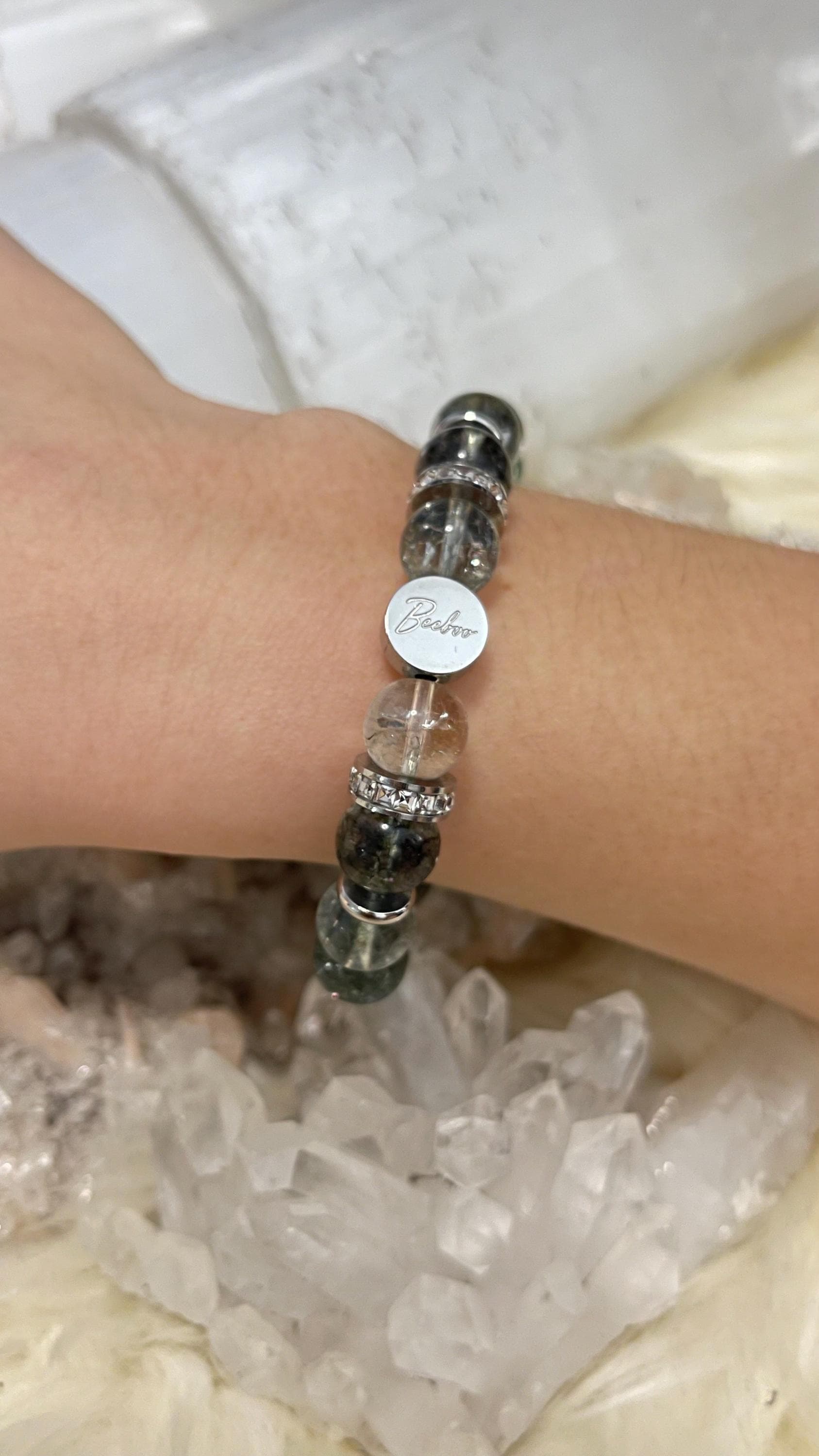 Step into soft sparkle and meaningful style with our Cloud Dancer Collection ✨ This Phantom Quartz Bracelet features clear, light-catching beads with natural “phantom” layers inside—wispy shapes that look like tiny clouds or mountain silhouettes suspended in crystal. Paired with shimmering rhinestone accents, it’s an elegant piece that feels dreamy, rare, and effortlessly chic.