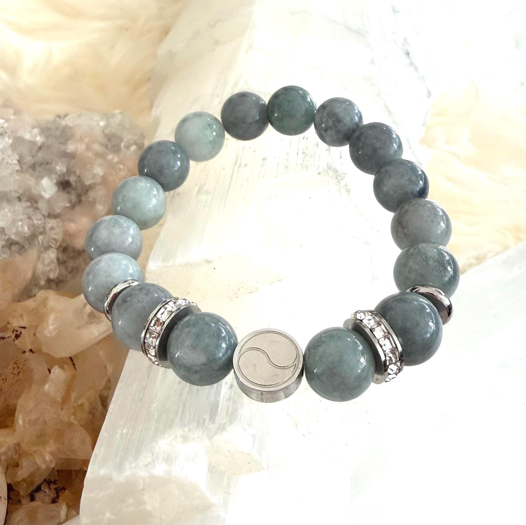 Strung on a strong, comfortable elastic cord, it slips on easily and feels effortless all day. Wear it solo for clean, polished style or stack it with your favorite crystal bracelets for a luxe layered look. Burmese jade has long been treasured for its symbolism and is often associated with luck, harmony, and prosperity—a meaningful piece to wear as you step into 2026 with confident, grounded energy.