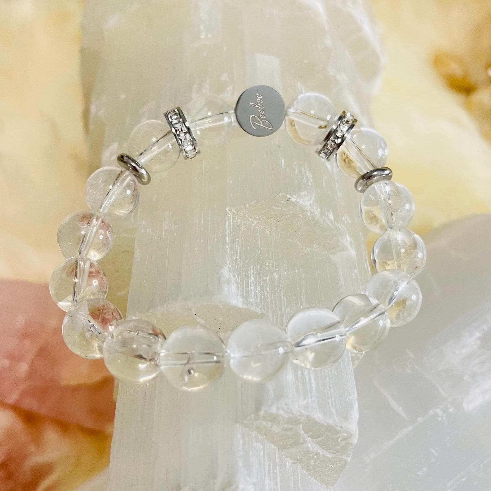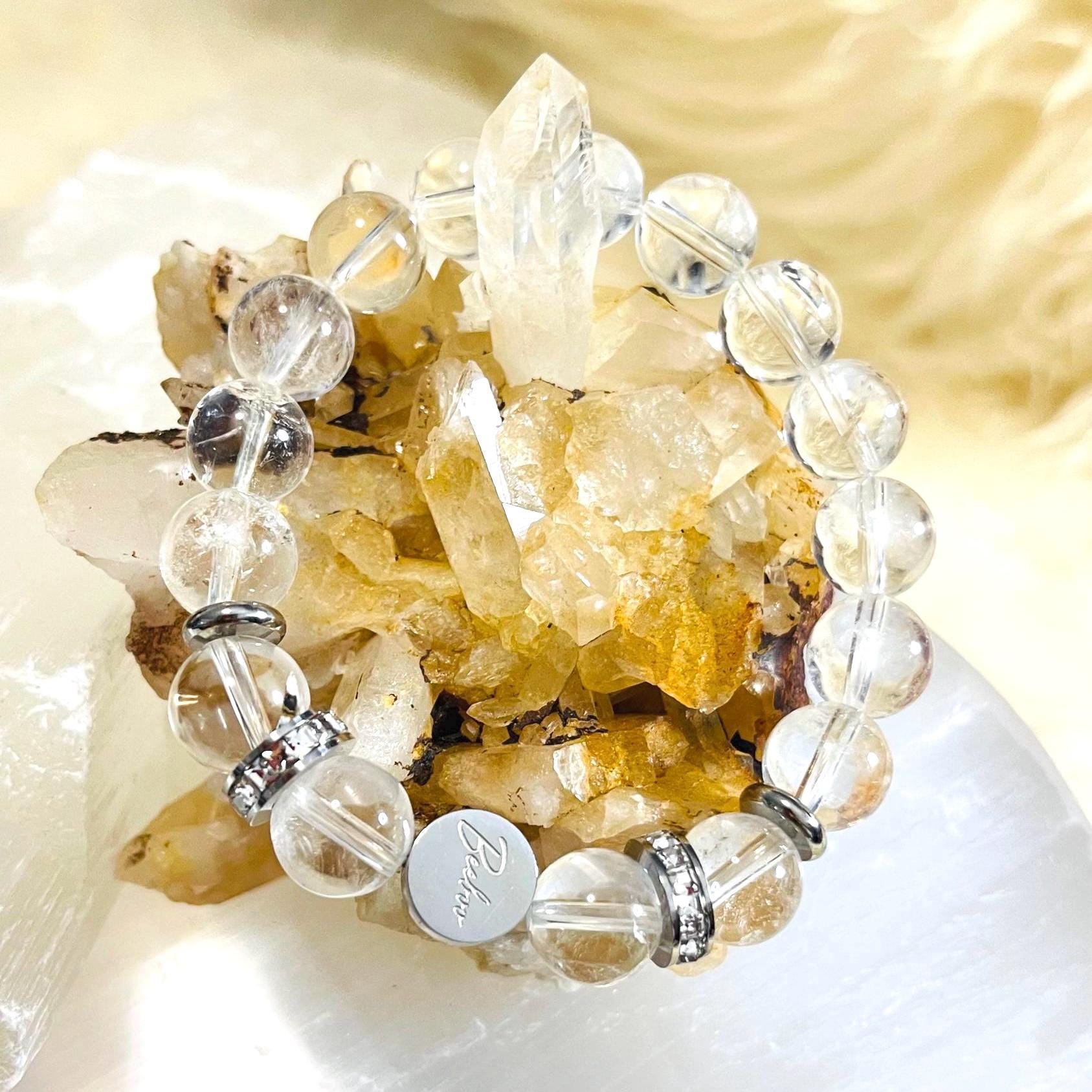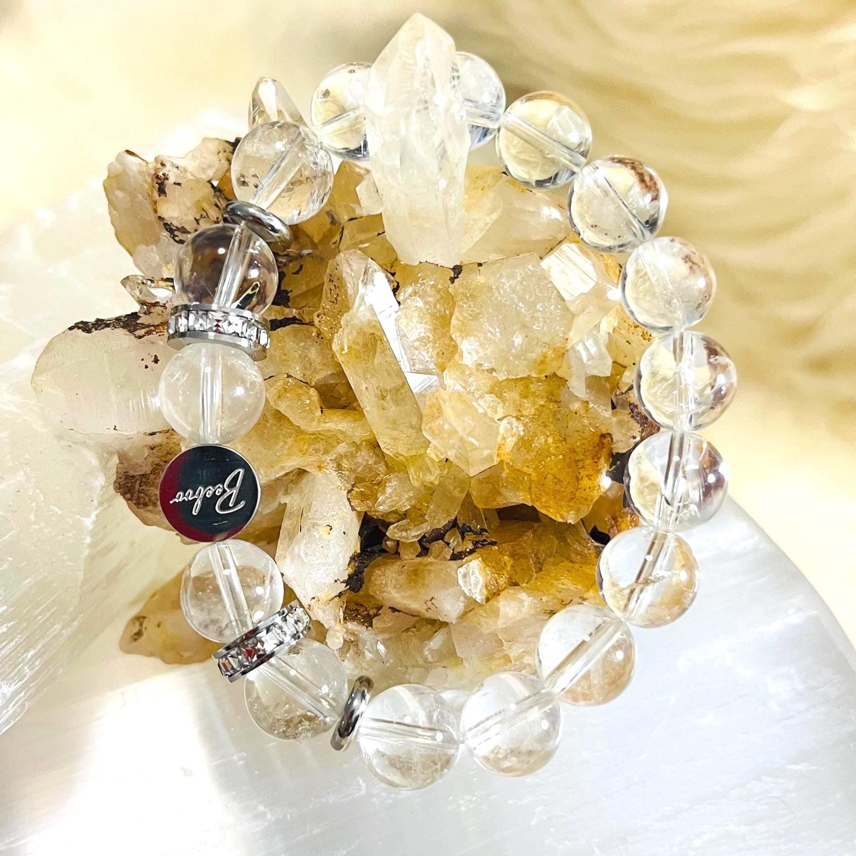 Meet the ultimate wear-with-everything sparkle from our Cloud Dancer Collection ✨ This Clear Quartz Bracelet features bright, glassy-clear beads that catch the light like tiny droplets—paired with shimmering rhinestone accents for a clean, elegant glow that elevates any outfit.