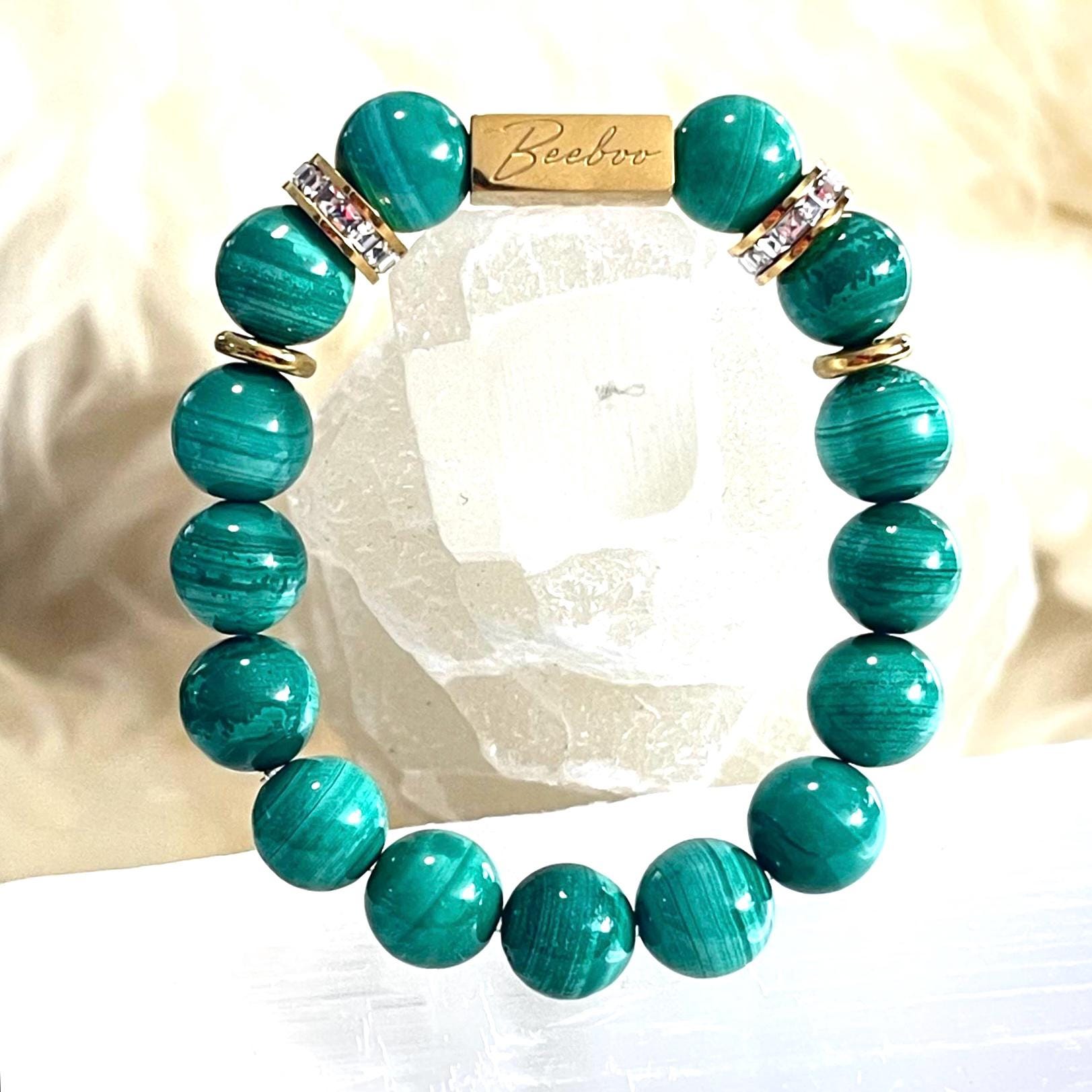 Natural Malachite bracelet, Malachite crystal bracelet, Malachite gemstone jewelry, 10mm Malachite beads, gold filled crystal bracelet, rhinestone Malachite bracelet, protection crystal jewelry, transformation bracelet, heart chakra bracelet, healing crystal jewelry, elastic gemstone bracelet, unisex crystal bracelet, spiritual jewelry gift