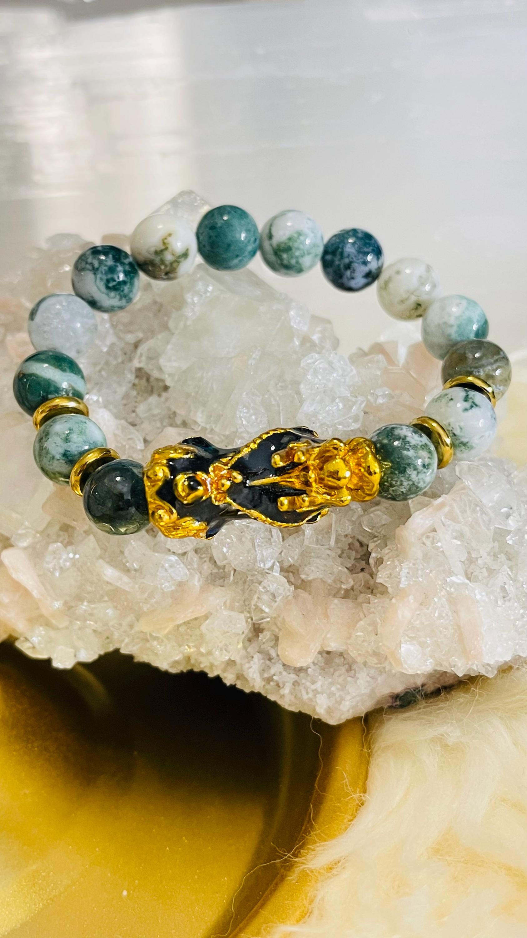 Together, this Tree Agate Pixiu bracelet blends calm grounding energy with strong wealth protection—ideal for daily wear, intention setting, and mindful living.