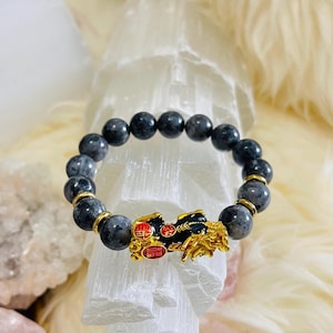 The Dragon Pixiu (Pi Yao) is one of the most respected symbols in Chinese tradition for wealth attraction and protection. Pixiu is said to seek riches, draw in good fortune, and guard accumulated wealth, while helping deflect negative influences and unlucky energy. A Pixiu bracelet for wealth is often worn to invite new opportunities, strengthen courage in decisions, and maintain financial stability. In Dragon form, Pixiu represents authority, ambition, and success, amplifying the bracelet’s bold, empowered meaning.