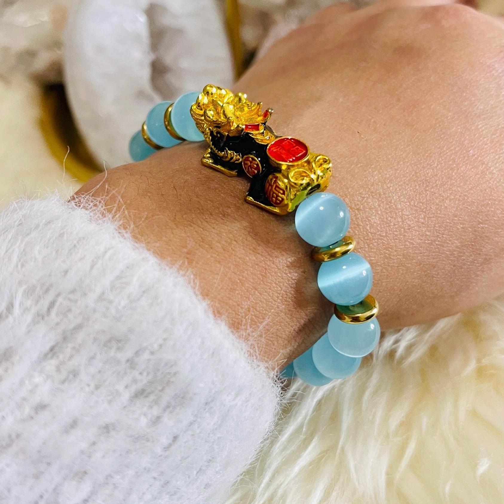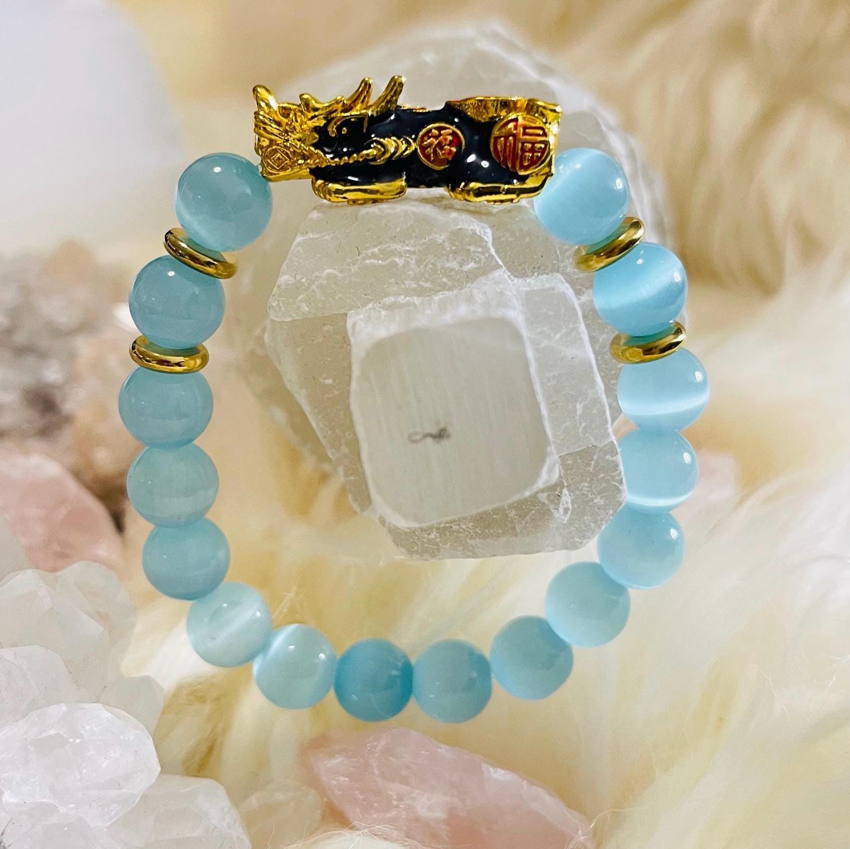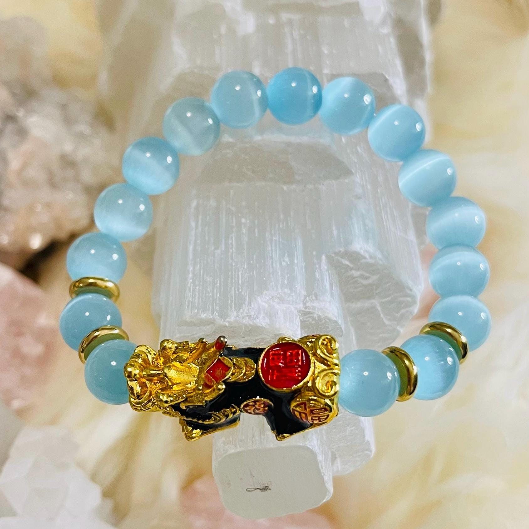 Together, this Blue Cat’s Eye Pixiu bracelet blends cool, steady energy with strong prosperity symbolism—ideal for daily wear, intention setting, and manifesting abundance with clarity and protection.