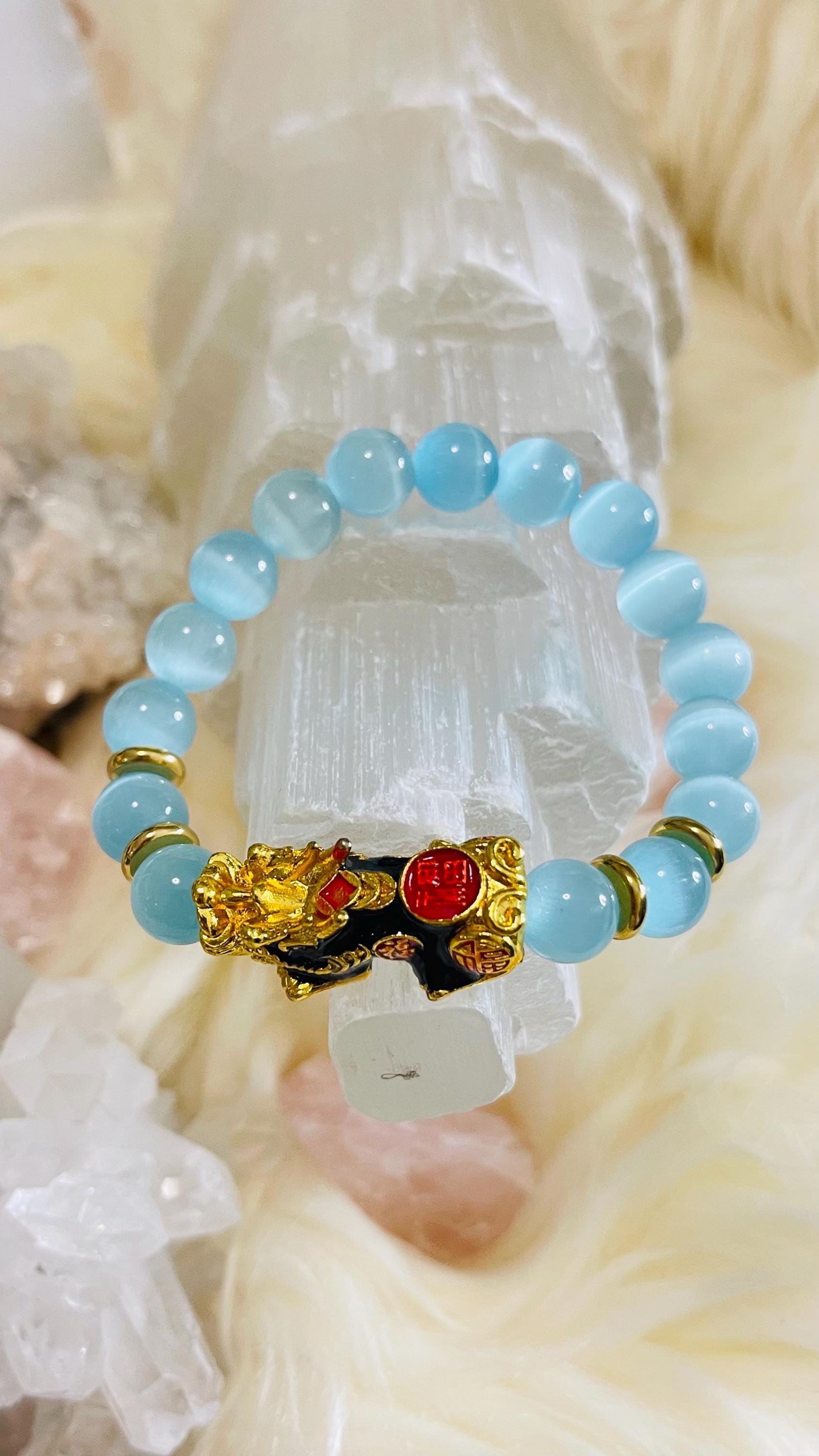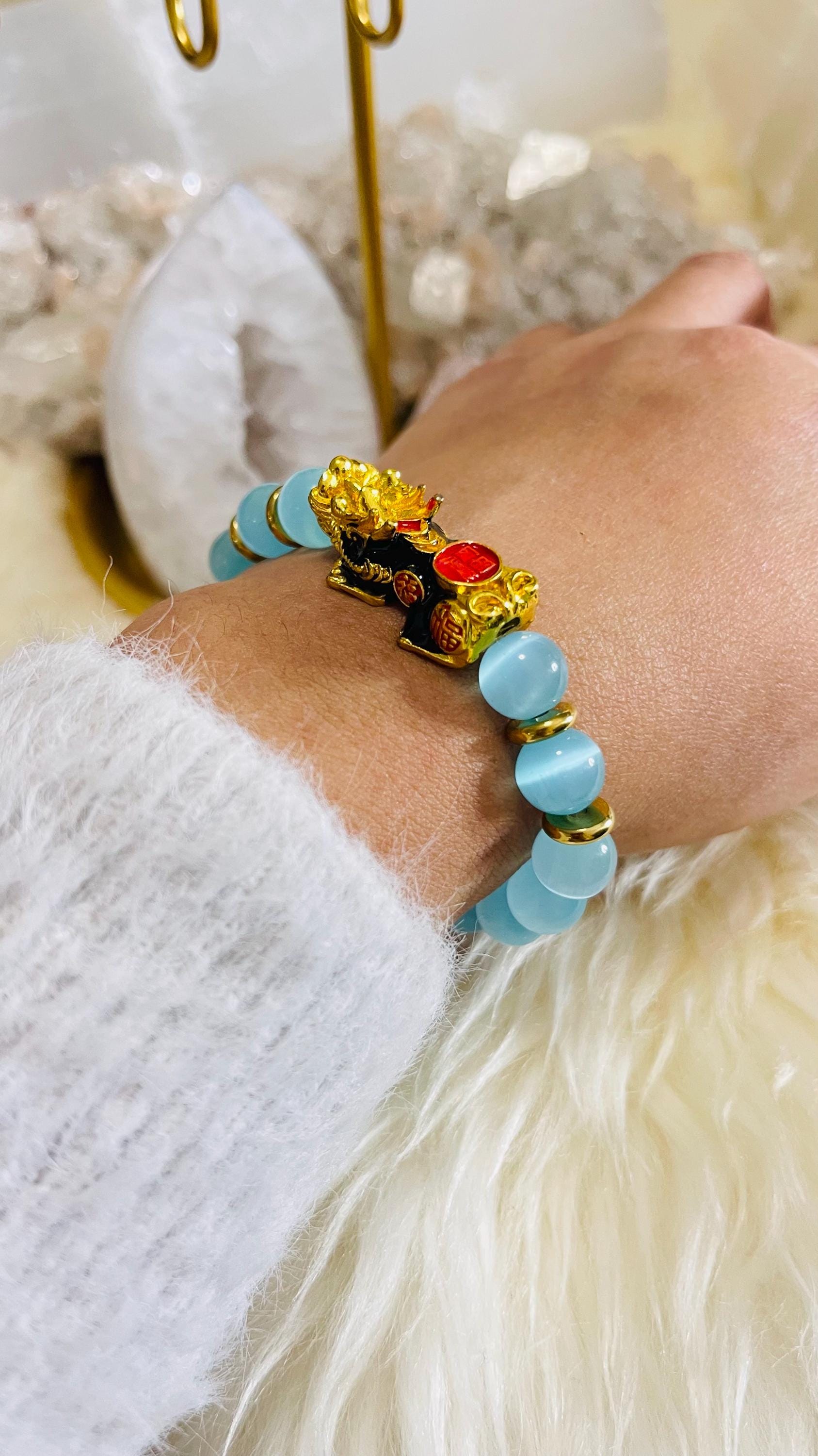 Together, this Blue Cat’s Eye Pixiu bracelet blends cool, steady energy with strong prosperity symbolism—ideal for daily wear, intention setting, and manifesting abundance with clarity and protection.