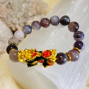 The Dragon Pixiu (Pi Yao) is a legendary Chinese guardian known in feng shui for wealth attraction. Pixiu is said to draw money luck, protect your fortune, and repel negative energy, helping opportunities stick while shielding you from setbacks. In Dragon form, Pixiu symbolizes power, ambition, and success, strengthening your drive while keeping your energy protected.
