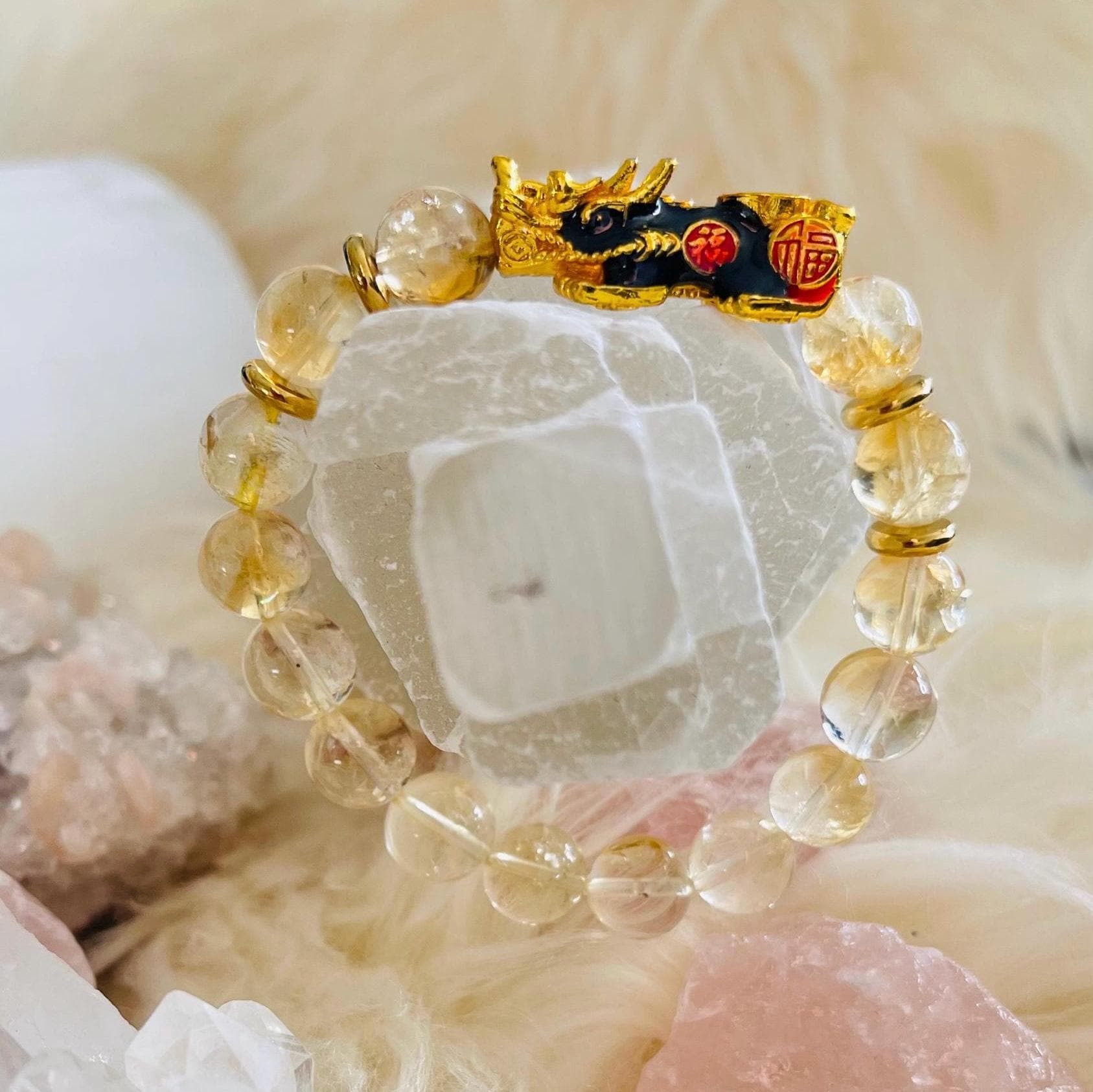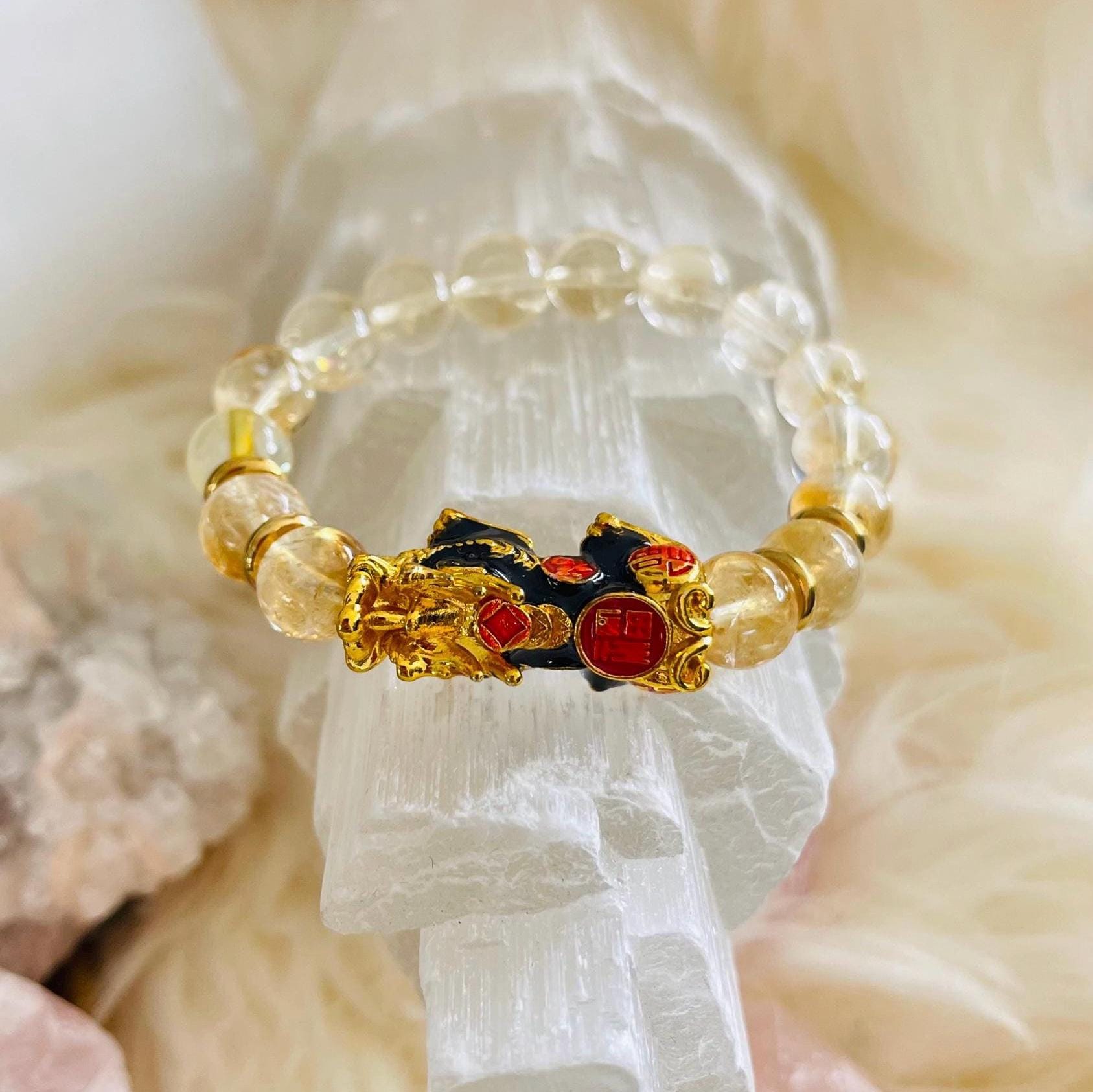 Attract sunshine energy, success, and protected prosperity with our Citrine Dragon Pixiu Bracelet—a radiant piece of feng shui wealth jewelry designed to boost money luck and confident action. Citrine is famous as the “merchant’s stone,” cherished for its association with abundance, optimism, and manifestation. Wearing a Citrine crystal bracelet is believed to support a positive mindset, spark motivation, and help you stay focused on goals—perfect for entrepreneurs, creators, and anyone calling in new opportunities.
