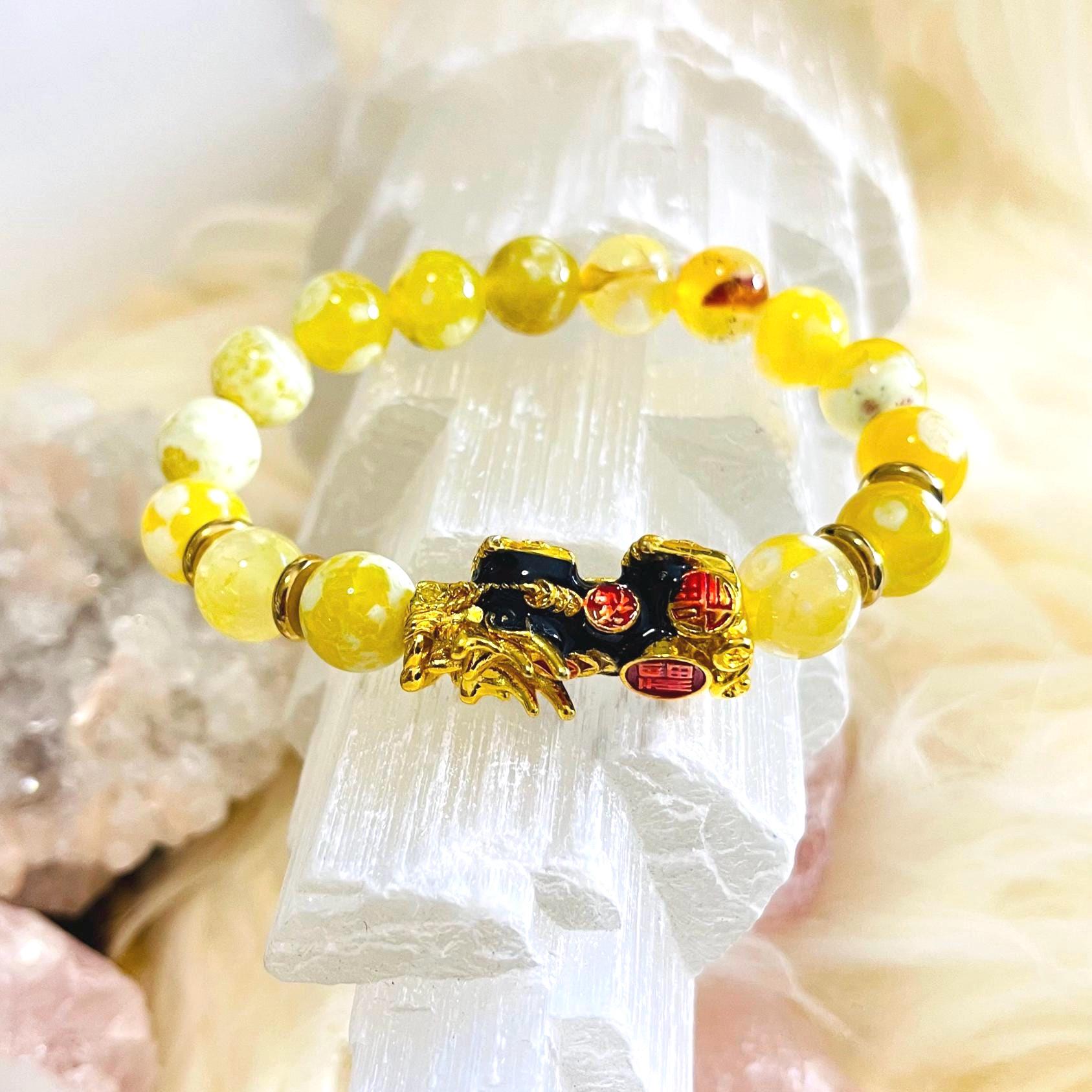 #YellowFireAgate #YellowFireAgateBracelet #FireAgateBracelet #DragonPixiu #PixiuBracelet #PiYao #FengShuiBracelet #WealthAttraction #MoneyLuck #ProsperityBracelet #ProtectionCharm #ConfidenceStone #CrystalJewelry #LuckyBracelet