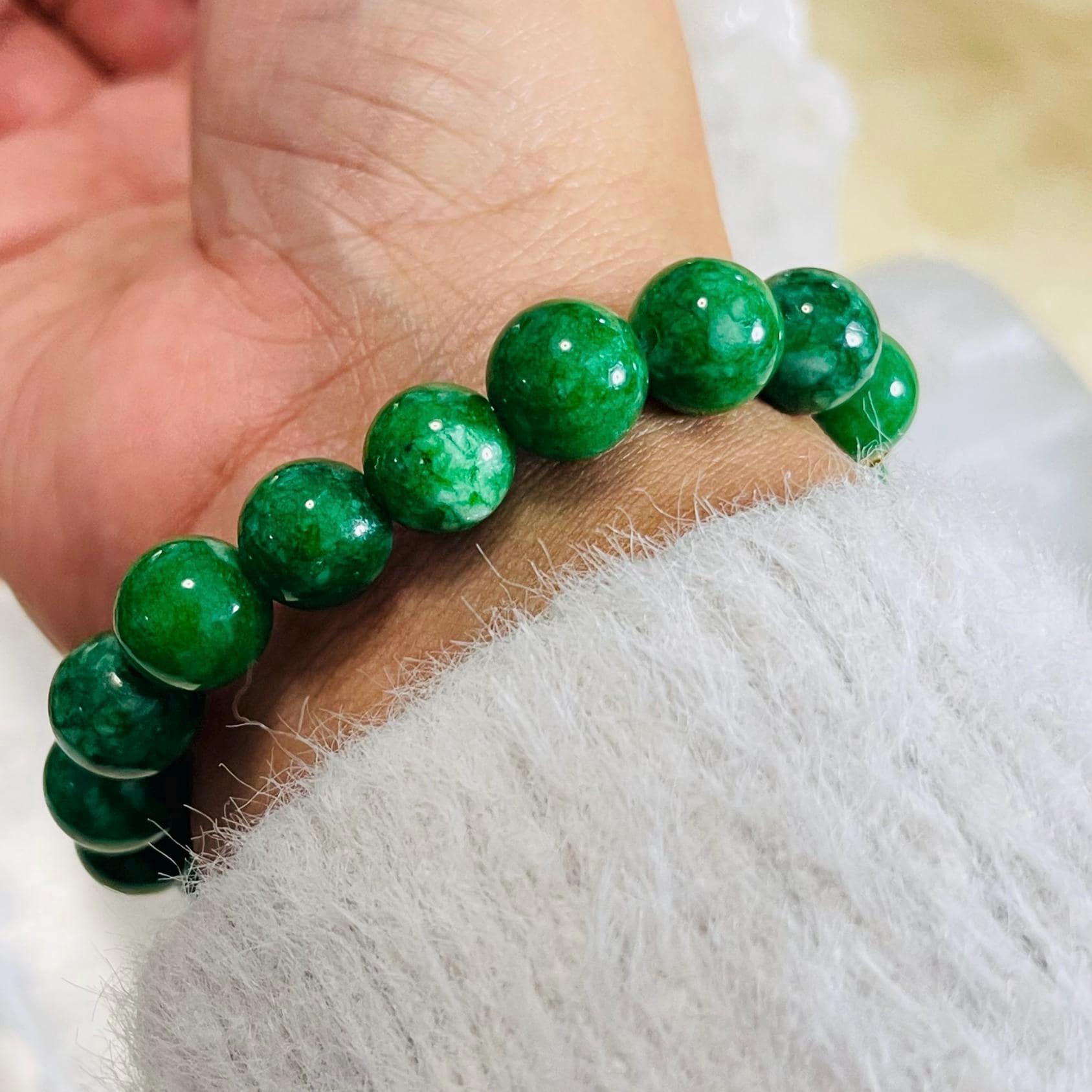 Handcrafted with care, each bracelet features genuine jade beads with unique natural variations—no two are exactly alike. The result is a one-of-a-kind accessory that looks refined on its own and pairs beautifully with gold or silver jewelry, casual outfits, workwear, and minimalist looks.