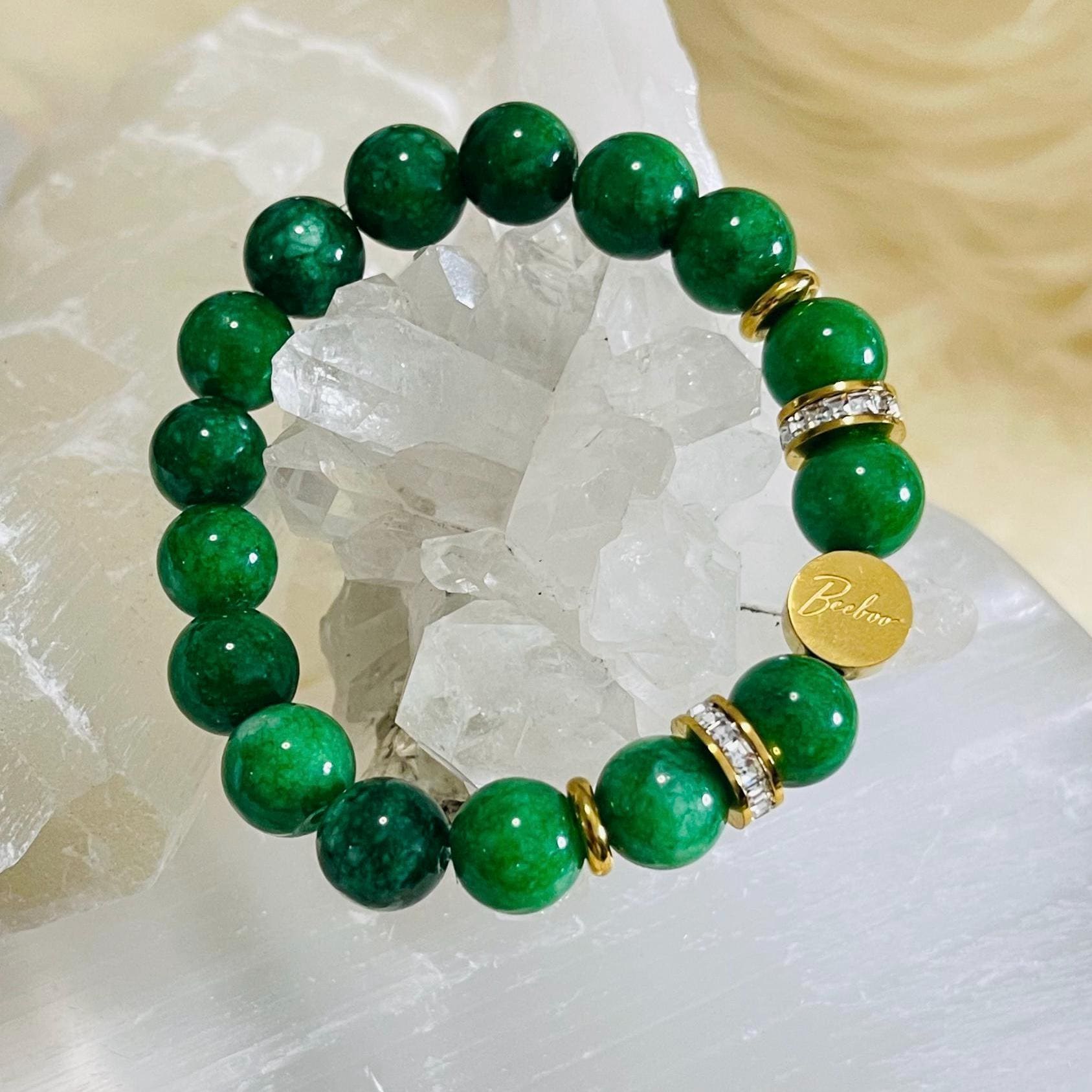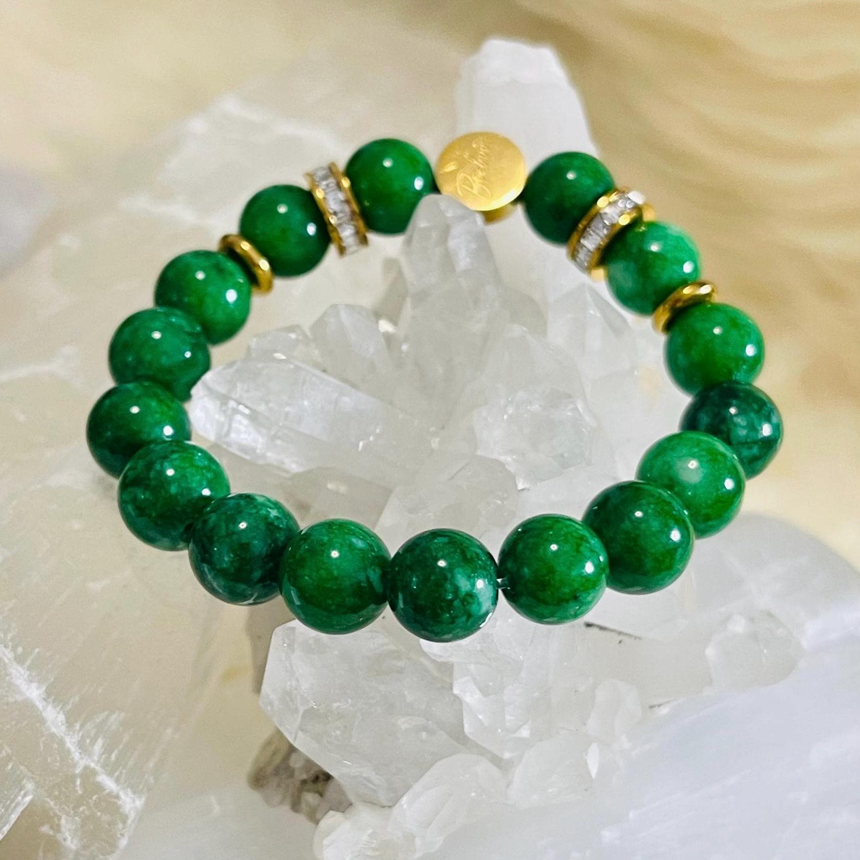 Jade has long been associated with balance and well-being, believed to support inner peace, emotional stability, and confident decision-making. Many wear jade as a good luck charm for new beginnings, travel, career goals, and personal growth—an effortless reminder to move through life with grounded energy and an open heart. Whether you’re setting intentions for success, inviting more calm into your routine, or simply drawn to jade’s natural beauty, this bracelet is designed to feel both stylish and purposeful.