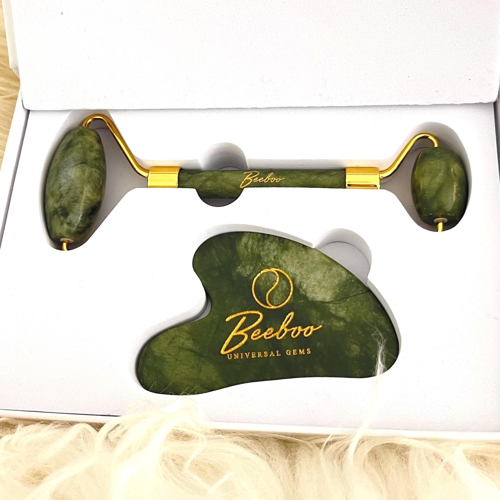 Enhance your skincare routine with our Jade Gua Sha and Facial Roller Set, crafted from natural jade stone and inspired by centuries-old beauty rituals. Jade has long been used in traditional skincare practices for its cooling, balancing, and rejuvenating properties, making it a timeless tool for glowing, healthy-looking skin.