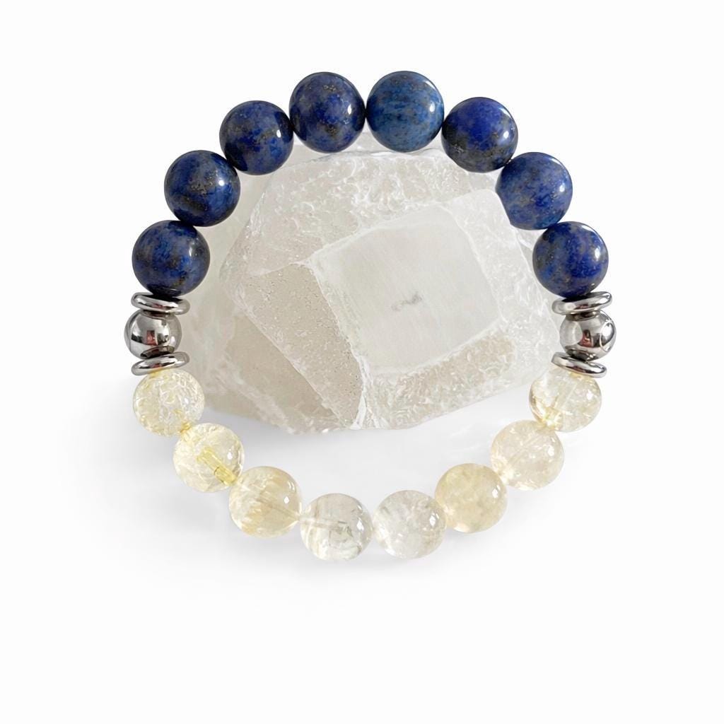 Step into confidence, clarity, and abundance with our Lapis Lazuli & Citrine Duo Power Bracelet, thoughtfully designed to combine two powerful crystals known for their uplifting and balancing energies. Handcrafted with intention, this bracelet blends spiritual meaning with timeless style, making it perfect for everyday wear or gifting.