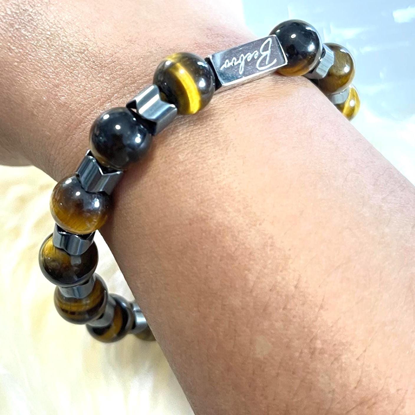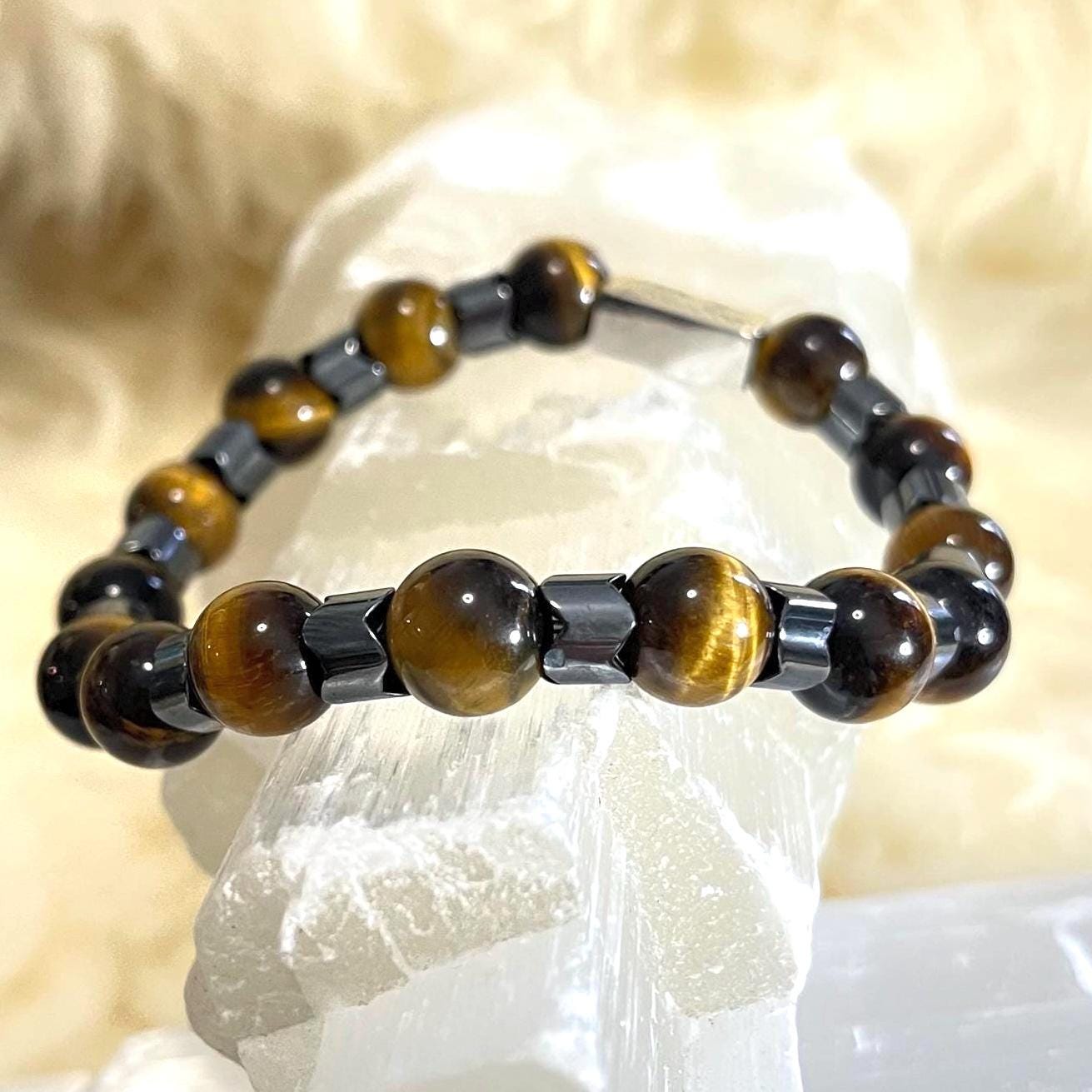 men tiger eye bracelet, hematite bracelet for men, 10mm beaded bracelet, grounding bracelet, confidence bracelet, elastic mens bracelet, stainless steel jewelry, gift for him, handmade Etsy bracelet
