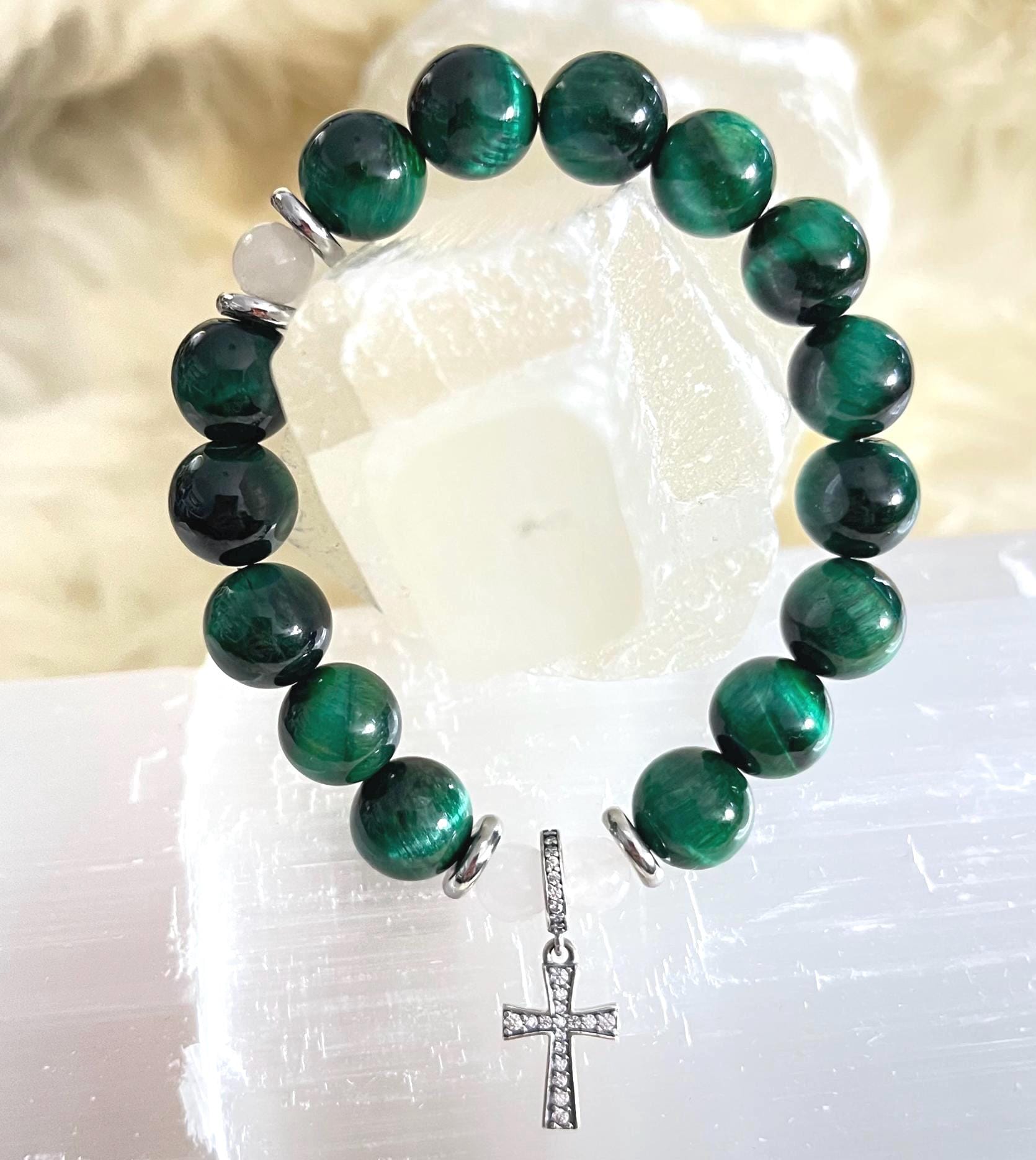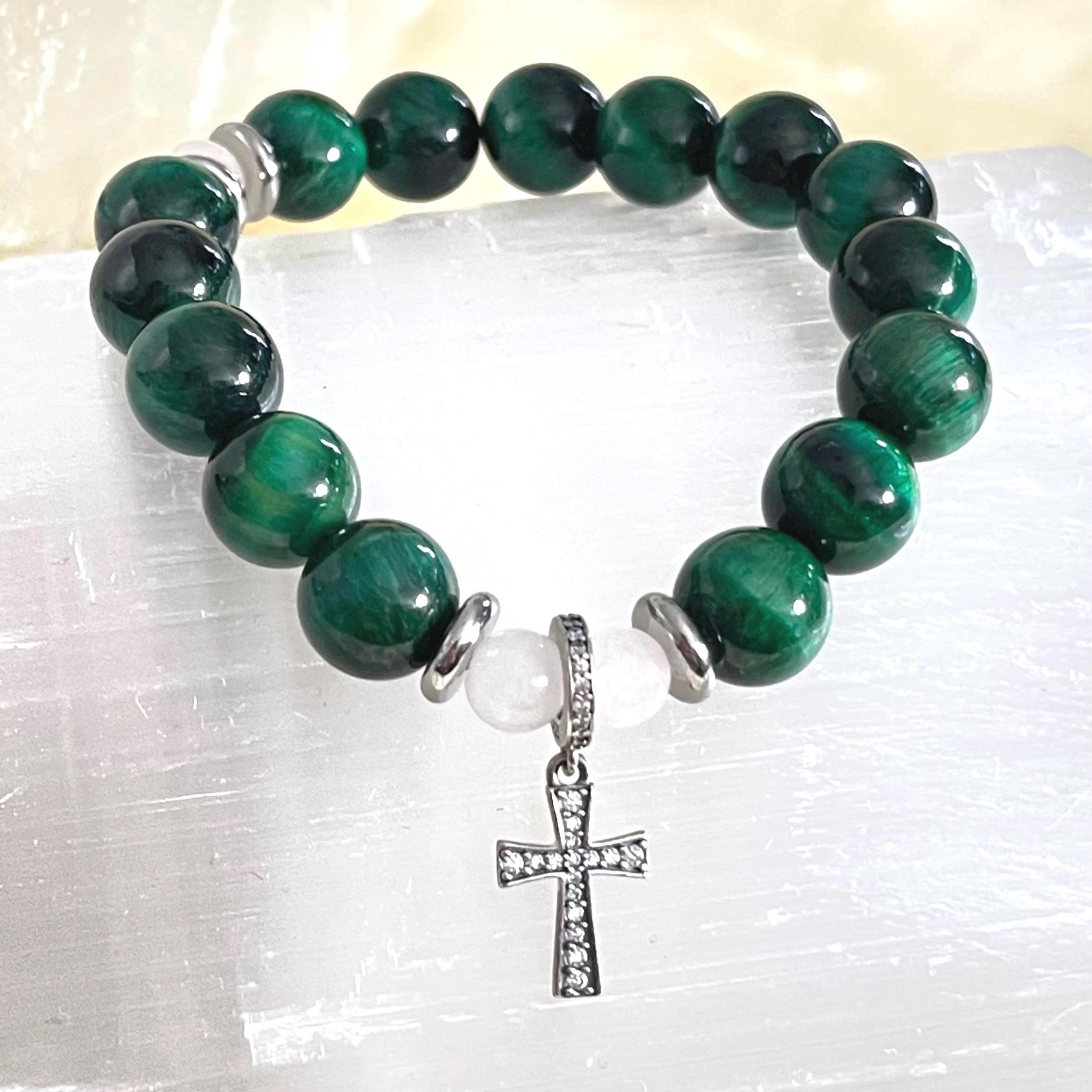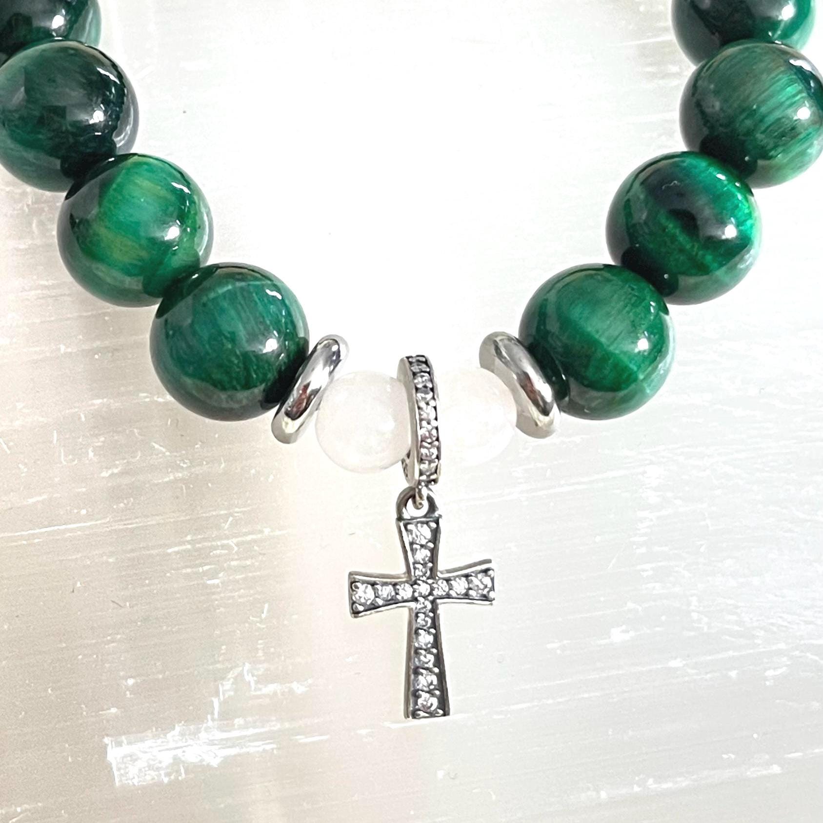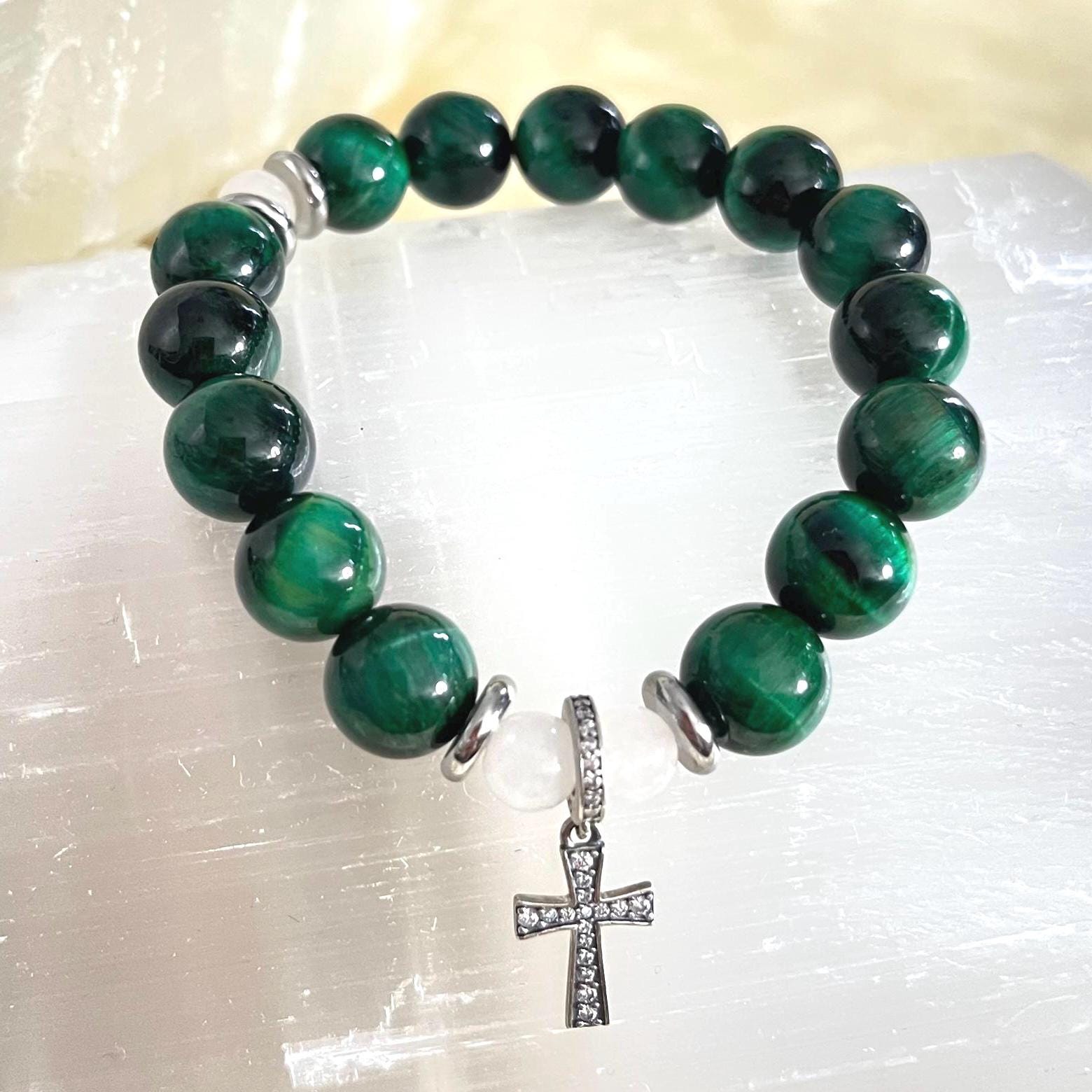 green tiger eye rosary bracelet, rosary collection bracelet, 10mm beaded bracelet, catholic jewelry, christian bracelet, prayer bracelet, 925 sterling silver, faith gift, confirmation gift, handmade Etsy bracelet