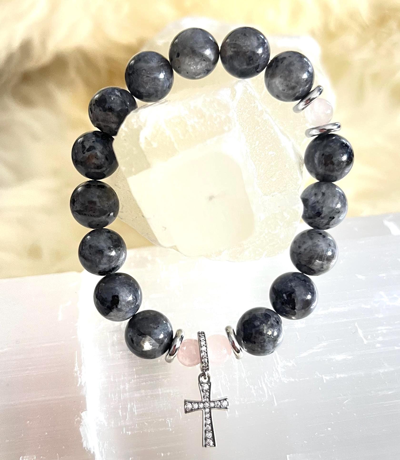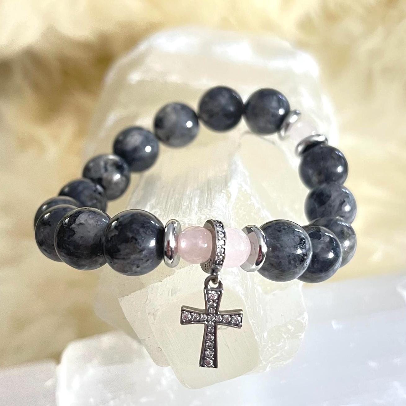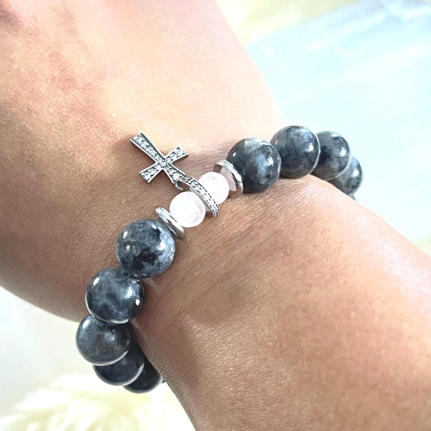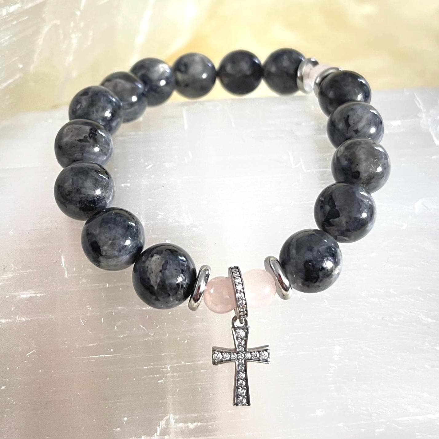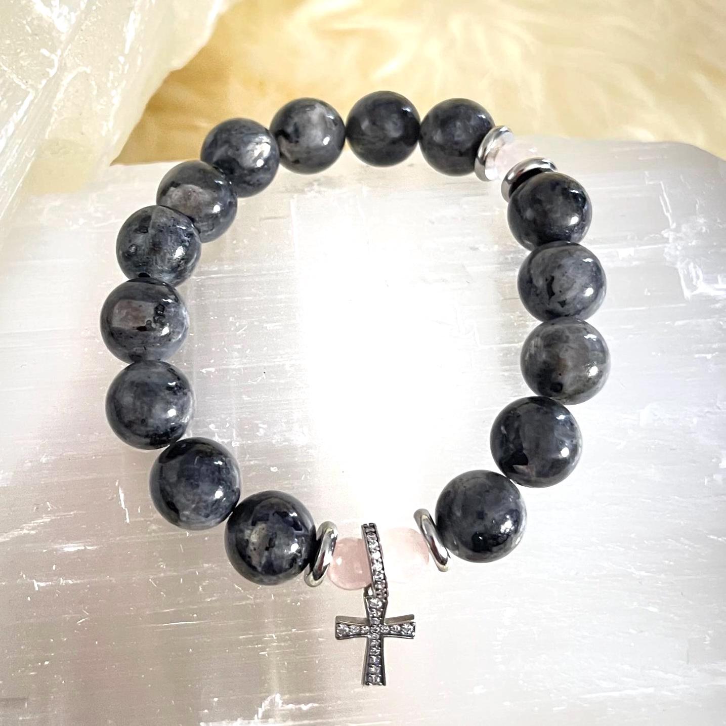 Carry faith with calm, grounded style with this Larvikite Rosary Collection Bracelet, handcrafted with smooth 10mm Larvikite beads and finished with elegant 925 sterling silver accents. Strung on a durable elastic cord for a comfortable slip-on fit, this bracelet is designed for everyday wear, prayer, or special occasions. Each piece arrives in an elegant gift box, making it a meaningful, gift-ready keepsake.