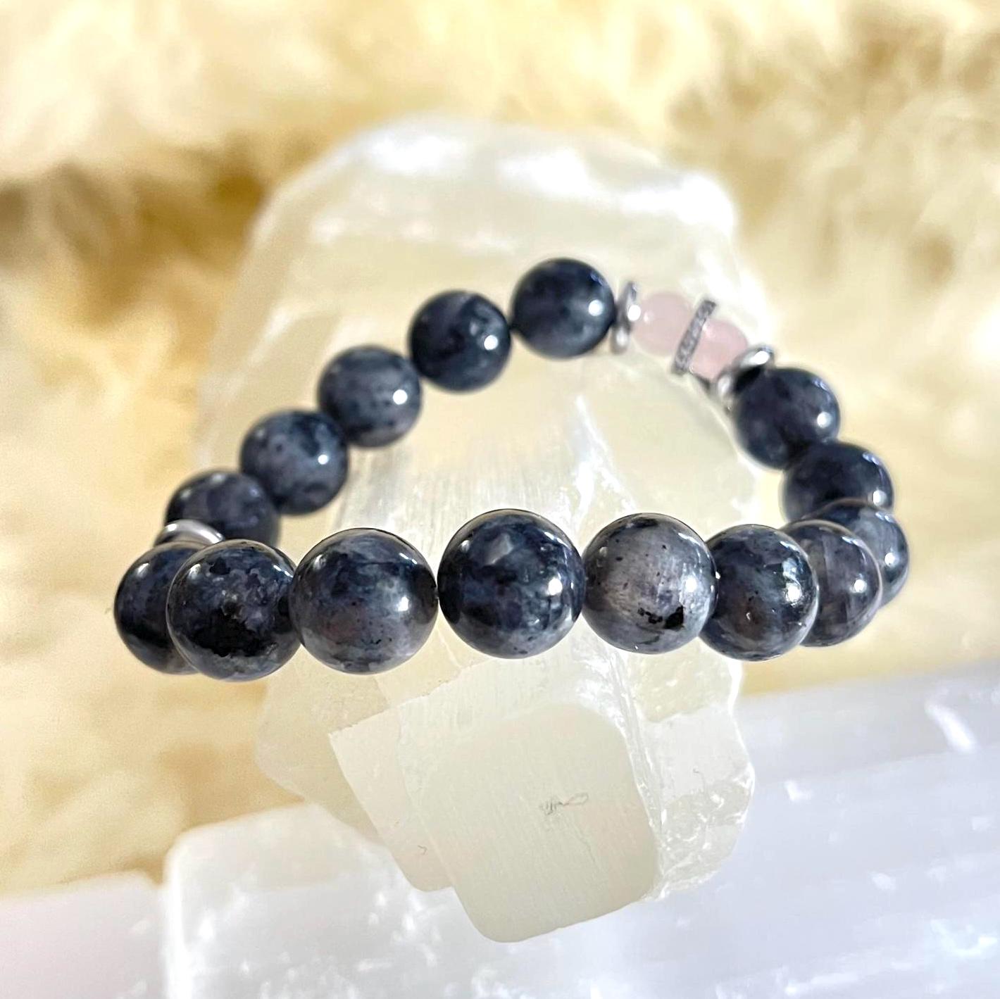 Larvikite is often called a stone of grounding, protection, and mental clarity. Recognized for its smoky gray tones and subtle silver-blue flash, it’s traditionally believed to help quiet an overactive mind, strengthen focus, and support steady decision-making. Many crystal lovers wear Larvikite when they want to feel more centered and resilient—especially during stressful seasons or major life changes. It’s also associated with inner strength and wisdom, encouraging you to trust yourself and move forward with confidence.