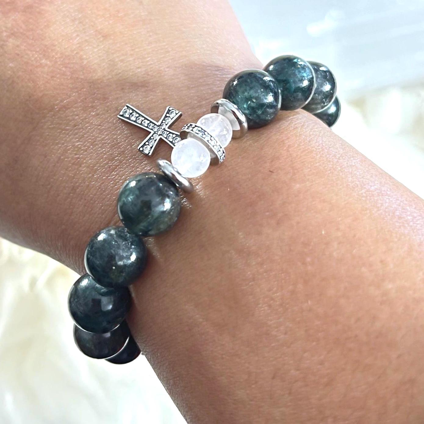 Carry faith with calm, heart-centered energy in this Green Kyanite Rosary Collection Bracelet, handcrafted with smooth 10mm Green Kyanite beads and finished with elegant 925 sterling silver accents. Strung on a durable elastic cord for a comfortable slip-on fit, this bracelet is designed for everyday wear, prayer, or special occasions. Each piece arrives in an elegant gift box, making it a meaningful, gift-ready keepsake.