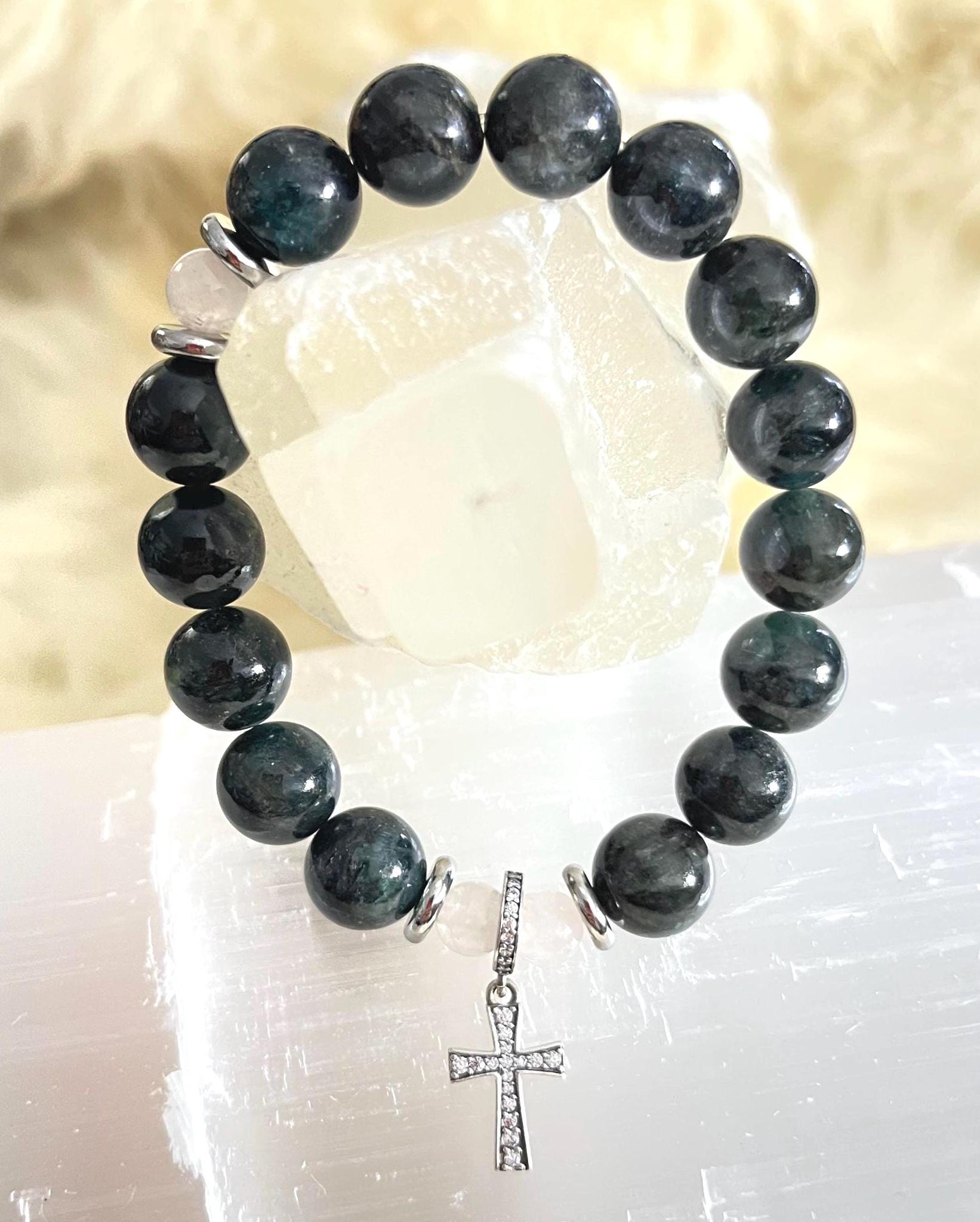 green kyanite rosary bracelet, rosary collection bracelet, 10mm beaded bracelet, catholic jewelry, christian bracelet, prayer bracelet, 925 sterling silver, heart chakra bracelet, faith gift, handmade Etsy bracelet