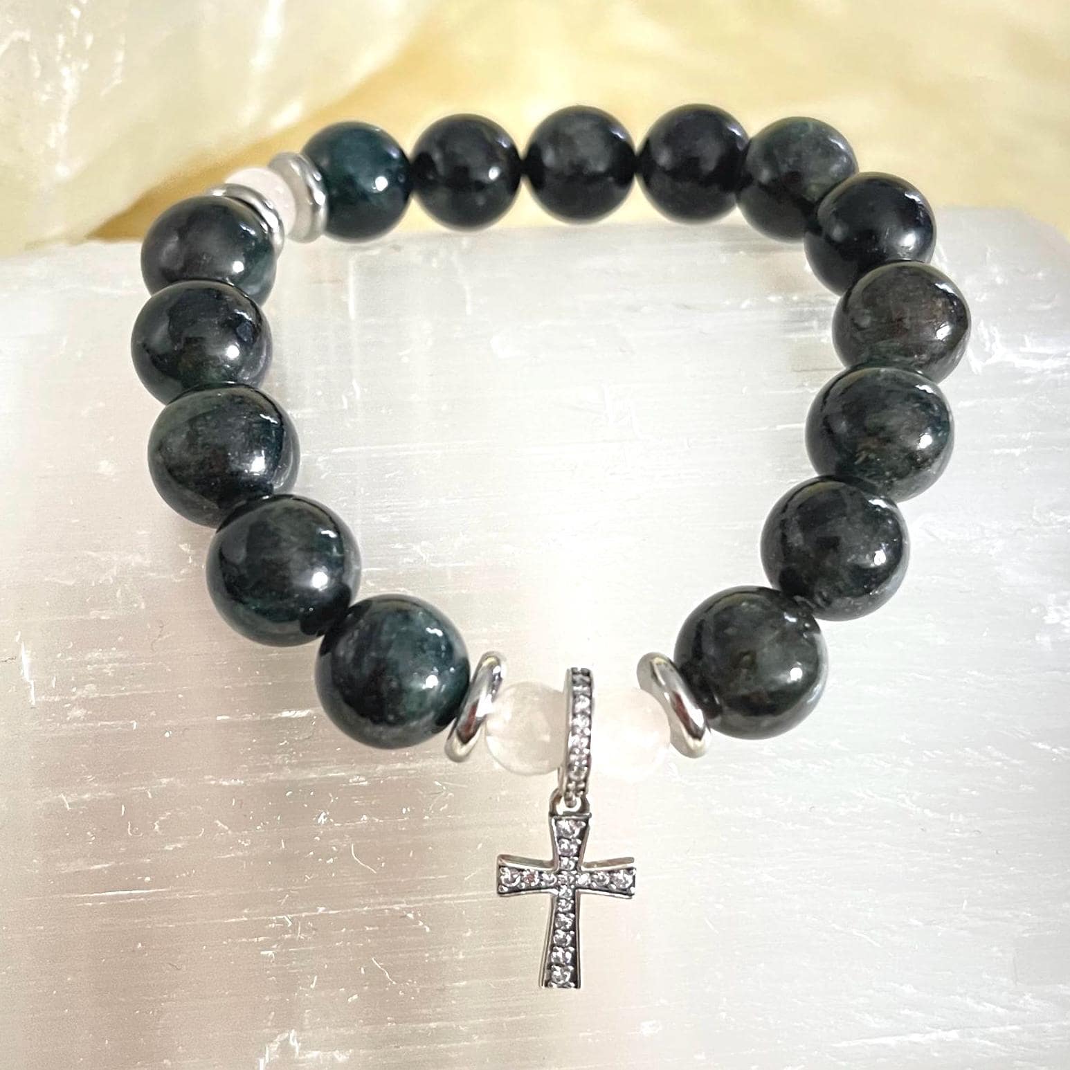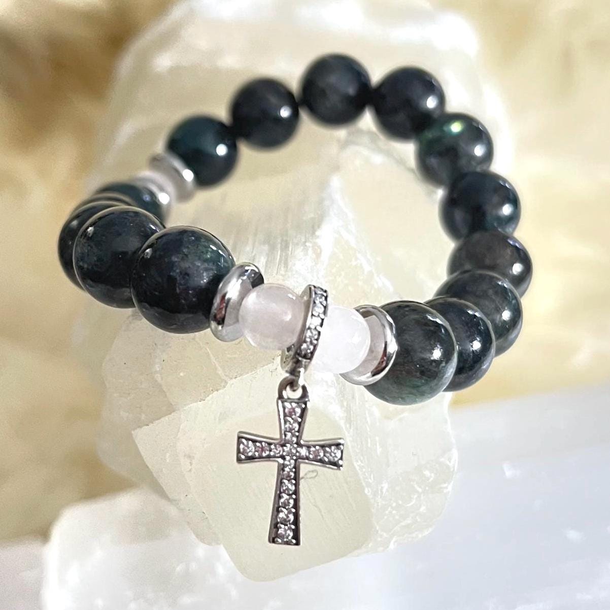 A thoughtful gift for baptisms, confirmations, first communions, birthdays, anniversaries, or anyone who loves faith-inspired jewelry with soothing, heart-healing stone energy. Wear it solo for a clean, meaningful look or stack it for a modern layered style.