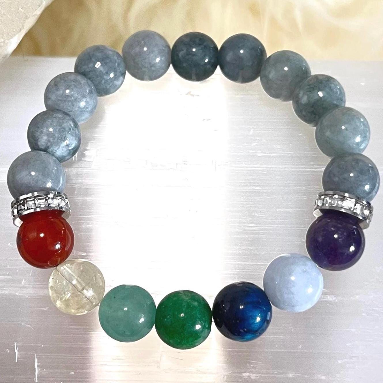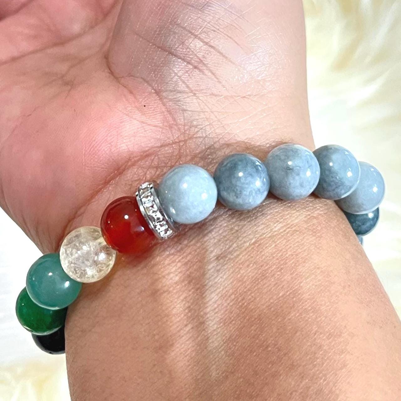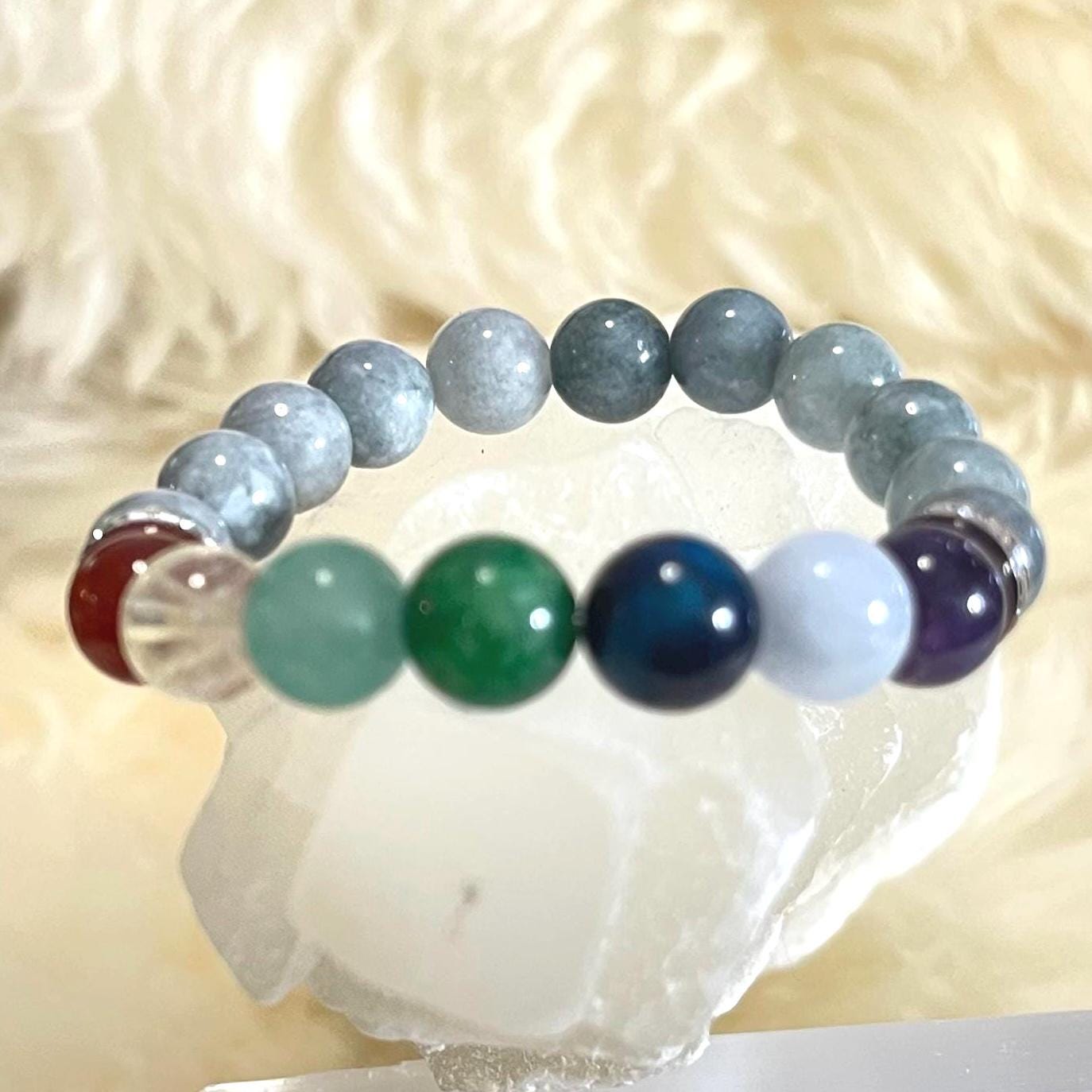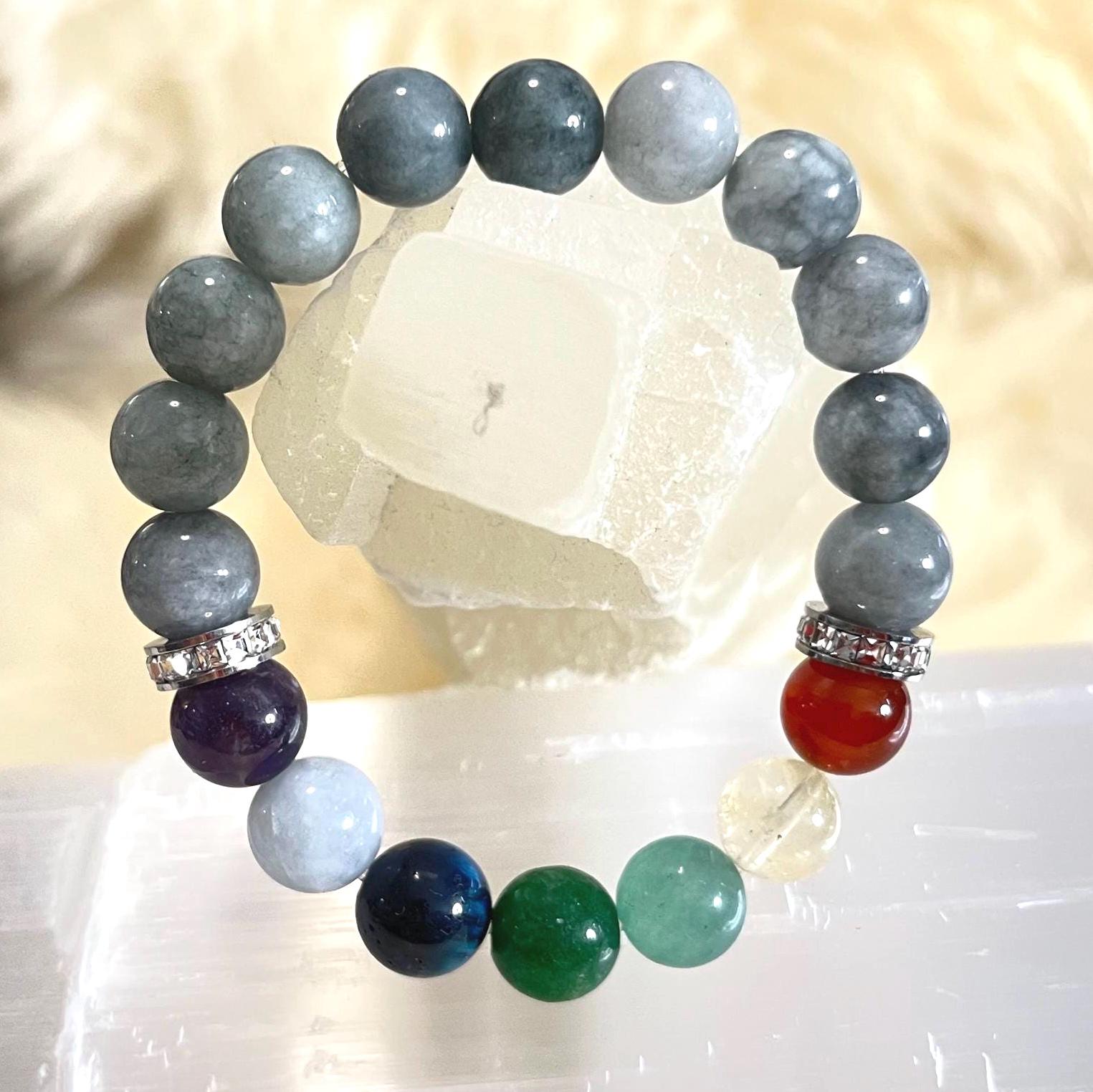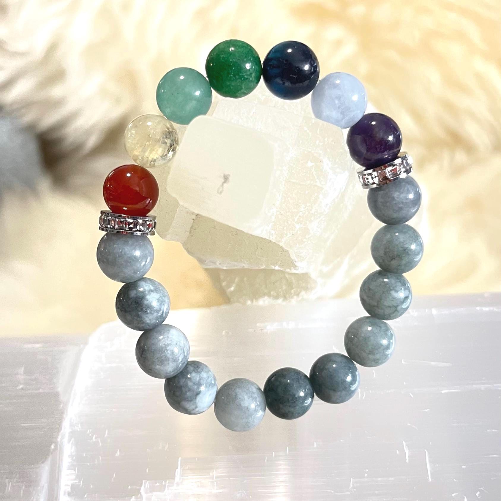 Whether you’re choosing it for its chakra-inspired meaning, the powerful presence of Burmese Jade, or the beautiful blend of colors, this bracelet is designed to be both eye-catching and purpose-filled—a perfect companion for daily balance and confident style.