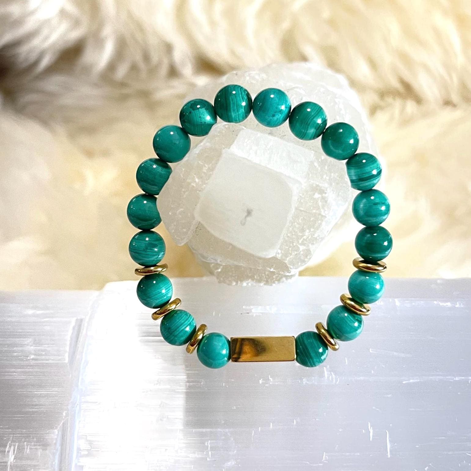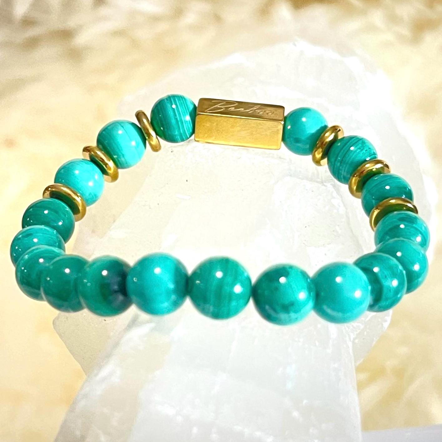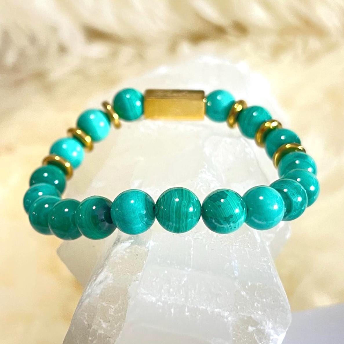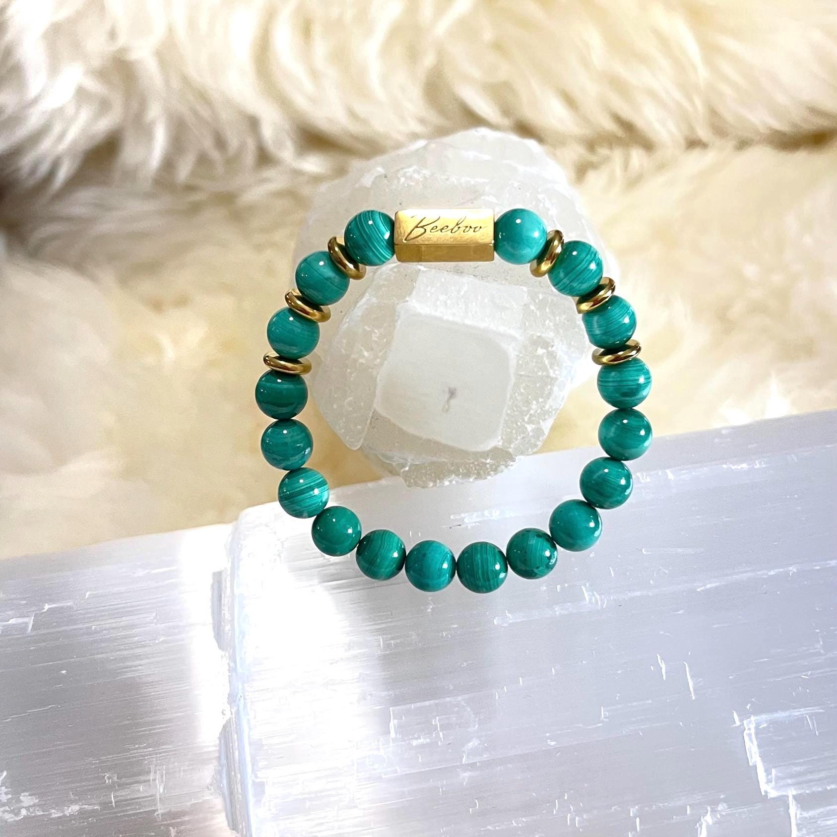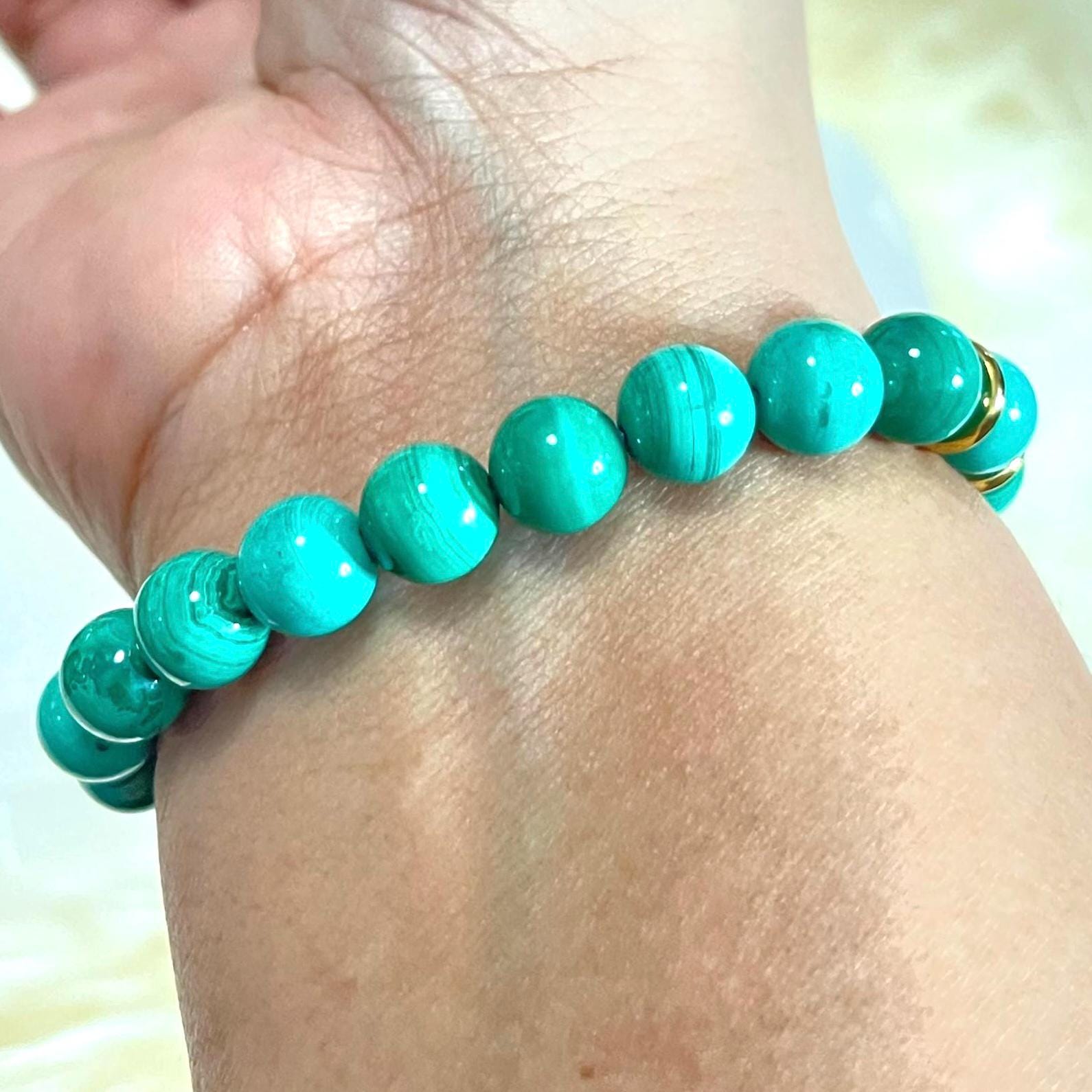 • Natural Malachite (8mm beads): Each bead has unique banding and pattern—no two bracelets are the same.