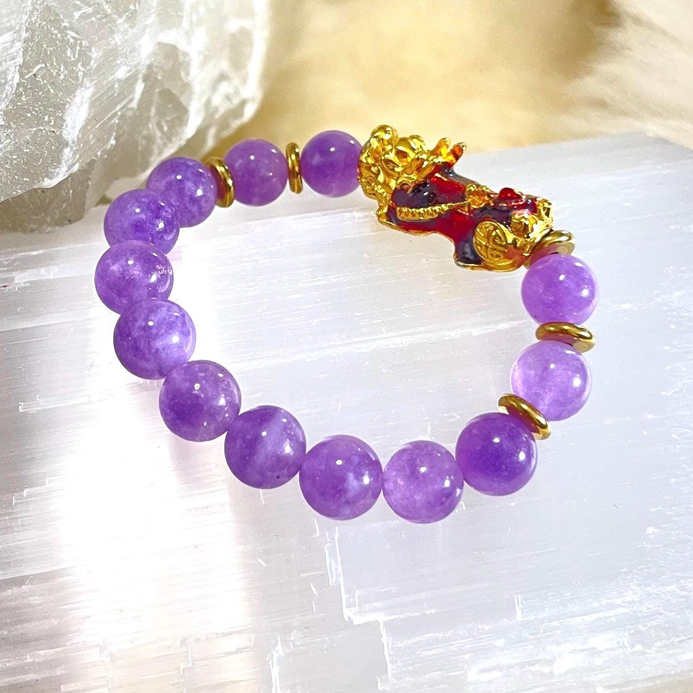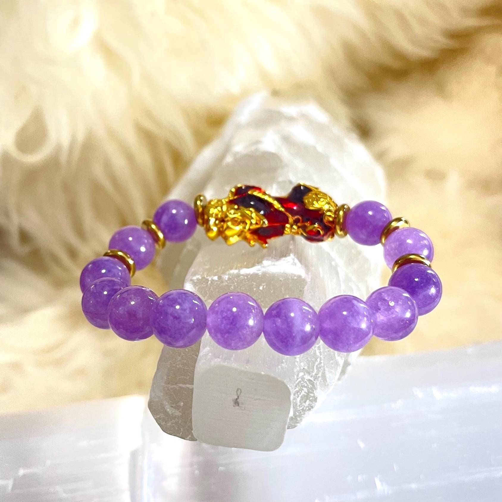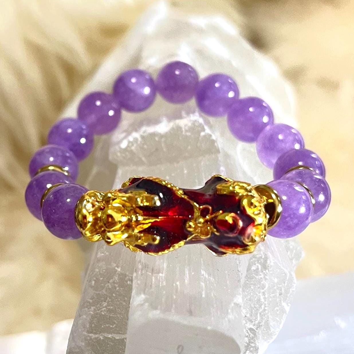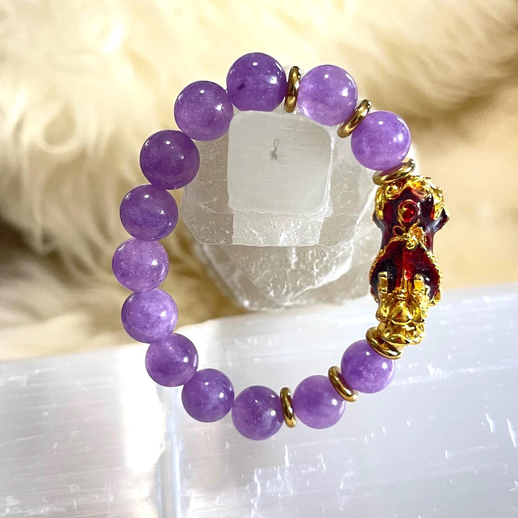 Purple Angelite bracelet, Angelite bracelet, Pixiu bracelet, Dragon Pixiu bracelet, feng shui bracelet, wealth attraction bracelet, money luck bracelet, protection bracelet, prosperity jewelry, crystal bracelet for calm, spiritual jewelry gift, beaded gemstone bracelet, unisex crystal bracelet.