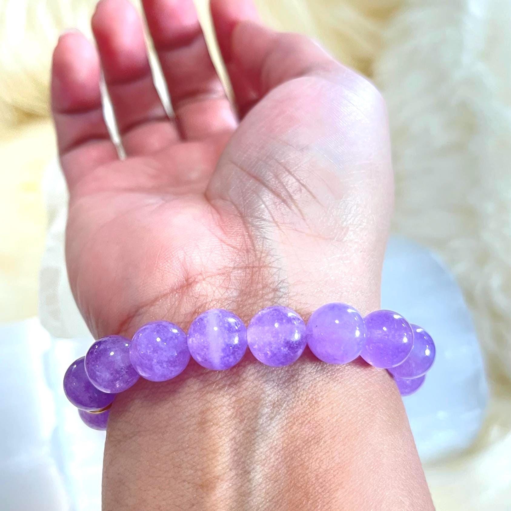 Purple Angelite is often connected with calm communication and inner peace. Many crystal lovers wear Angelite to help ease stress, quiet racing thoughts, and encourage a more relaxed state of mind—especially during busy seasons, life transitions, or emotionally intense moments. Its energy is commonly described as comforting and uplifting, making it a beautiful choice for people who crave stability without heaviness. Wearing a Purple Angelite crystal bracelet is believed to support patience, compassion, and clarity, helping you move through your day with a calmer heart and a steadier mindset.