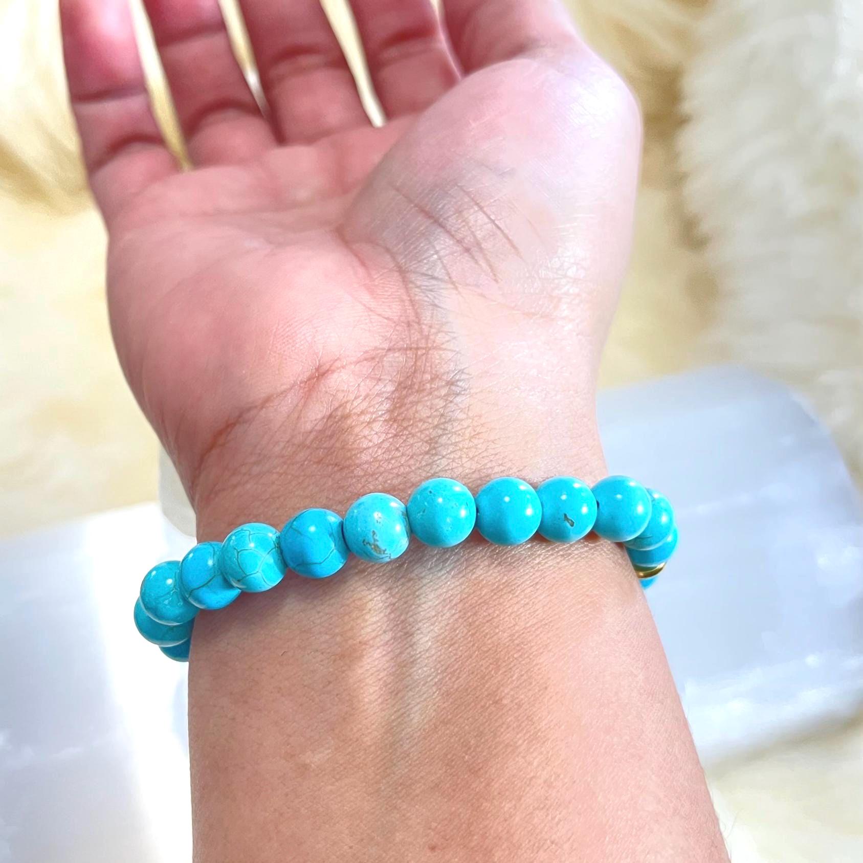 Because Turquoise is often associated with good luck and protective energy, it’s a favorite for people who want to feel supported while stepping into new opportunities—career upgrades, business launches, fresh goals, or a new chapter. Its bright, clean color also pairs beautifully with both casual and elevated outfits, making this Turquoise beaded bracelet a standout accessory you’ll actually reach for every day.