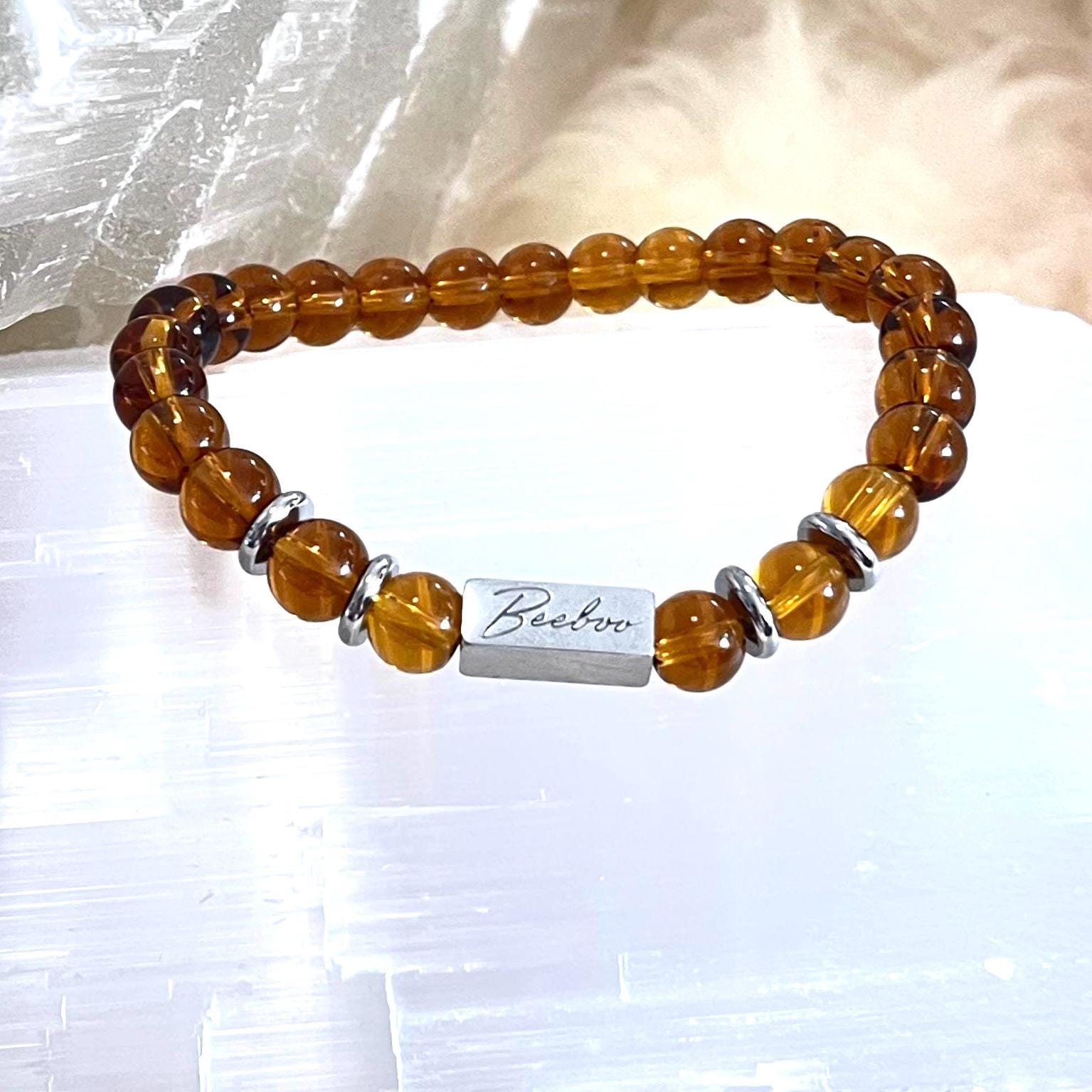 Discover the warmth, protection, and timeless beauty of our 8mm Amber Bracelet, a refined unisex beaded bracelet designed for everyday wear. Crafted with smooth 8mm natural Amber beads, accented with sleek stainless steel spacers, and strung on a high-quality elastic cord, this bracelet blends ancient energy with modern, minimalist style. Comfortable, durable, and versatile, it’s designed to suit both men and women effortlessly.
