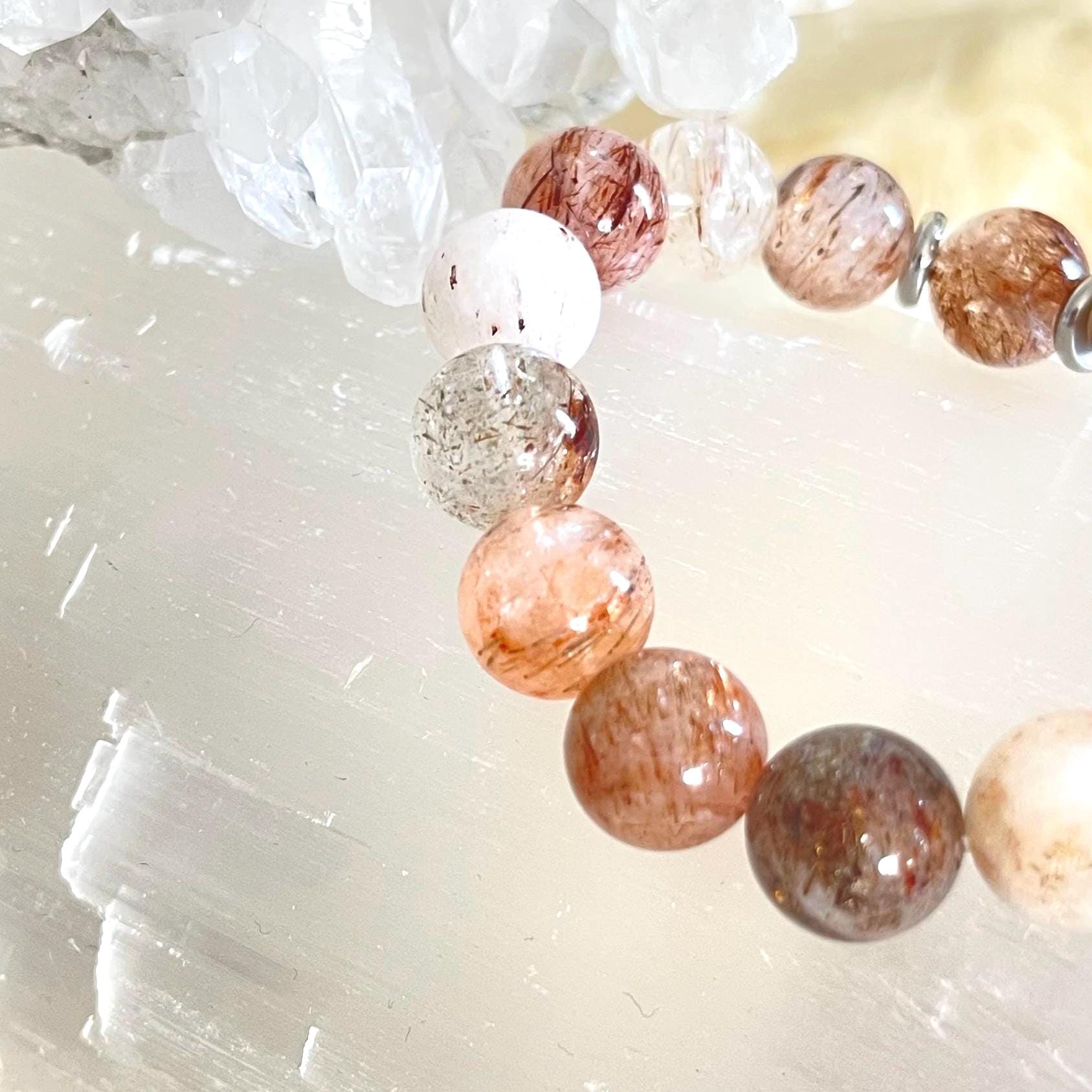 The bracelet is finished with polished stainless steel accents, chosen for their durability, resistance to tarnish, and clean, modern aesthetic. In spiritual symbolism, stainless steel represents strength, stability, and protection—reinforcing the amulet-like nature of this bracelet while adding a refined contemporary edge.