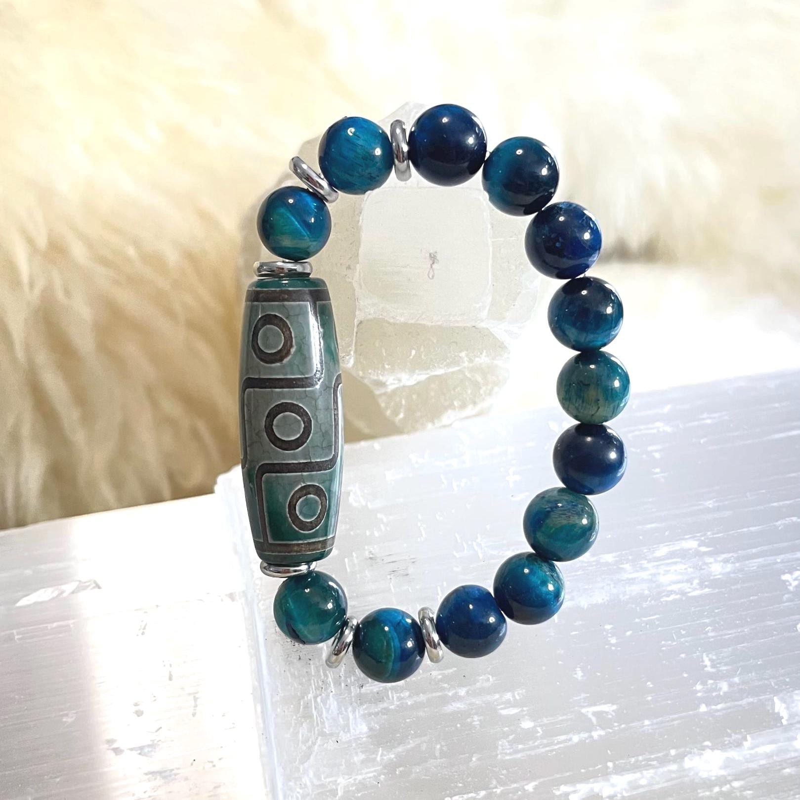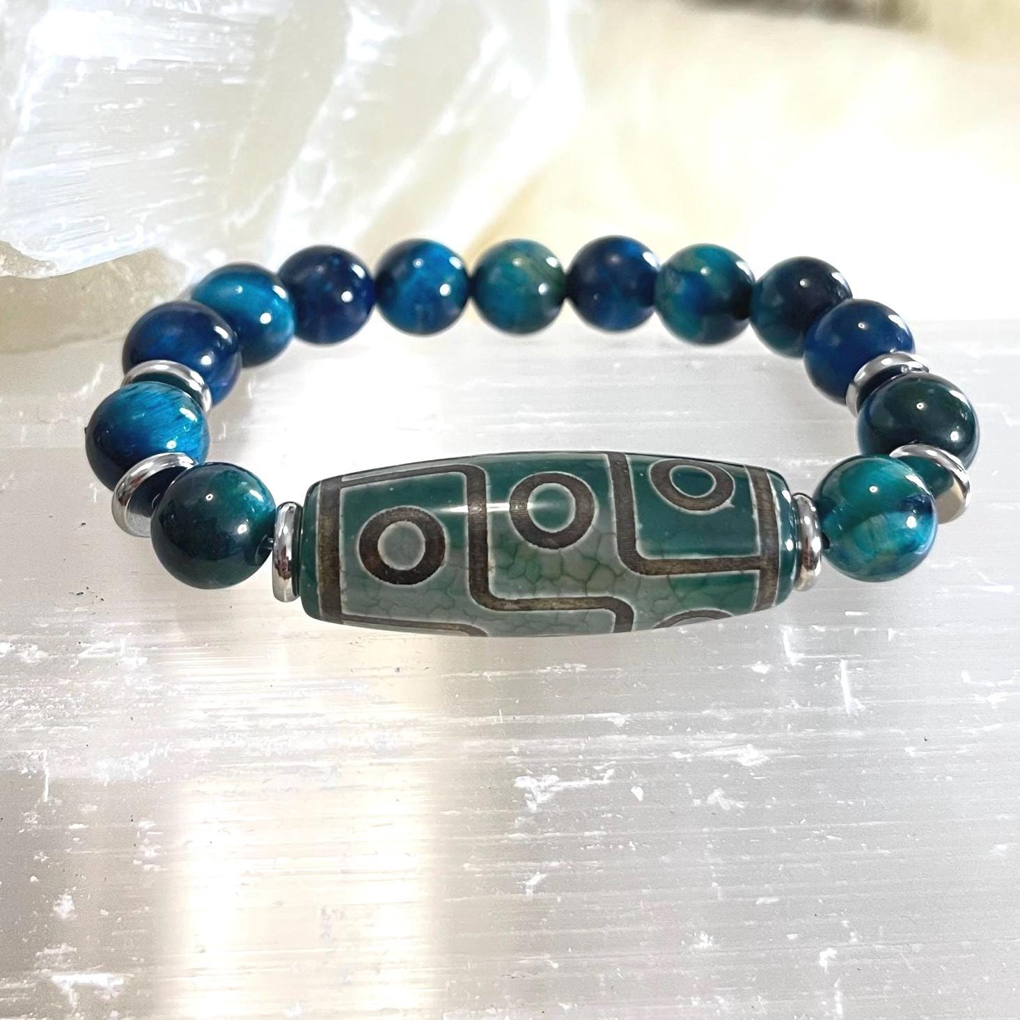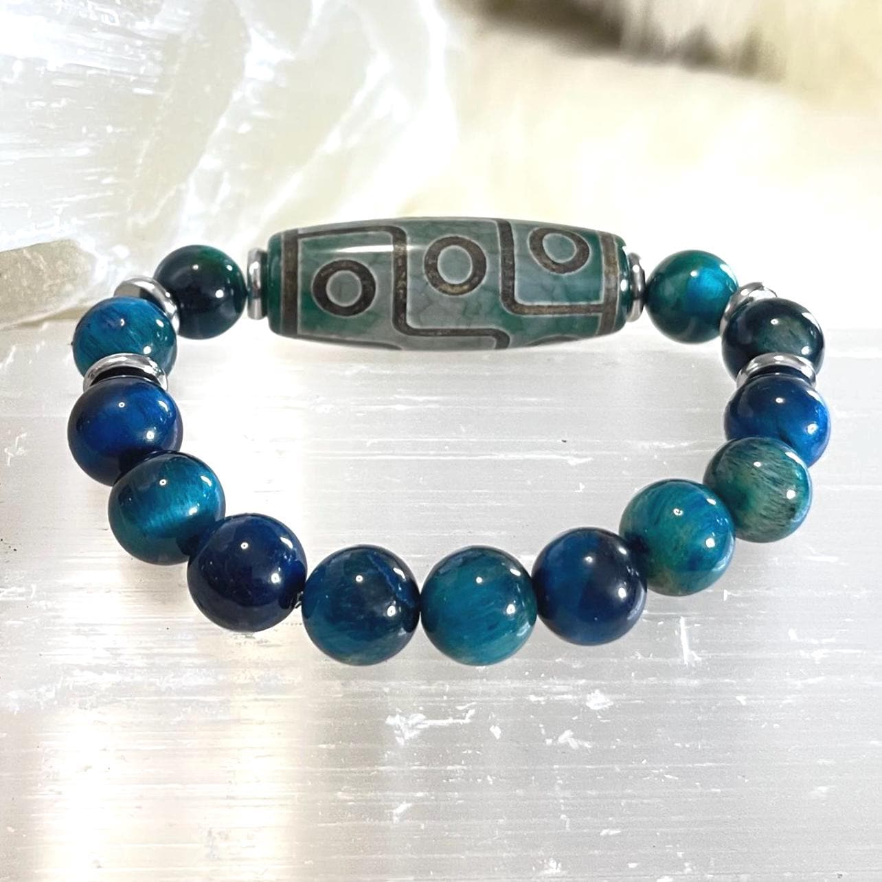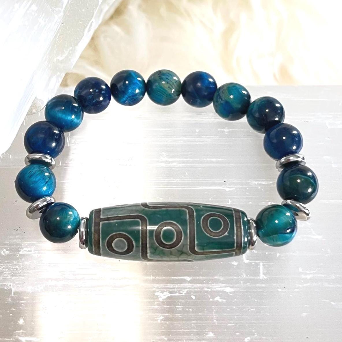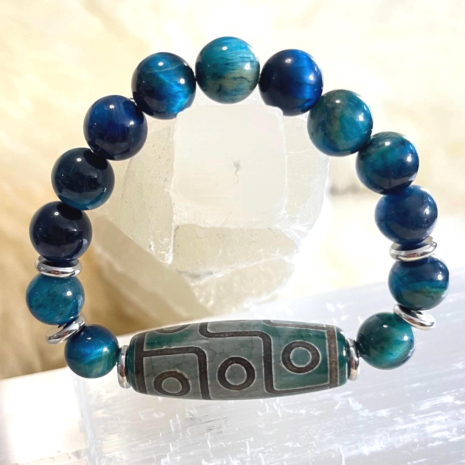 Whether you’re gifting someone special or choosing a bracelet for your own spiritual journey, this 9 Eye Dzi Agate and Blue Tiger Eye bracelet is a powerful reminder of protection, purpose, and prosperity.
