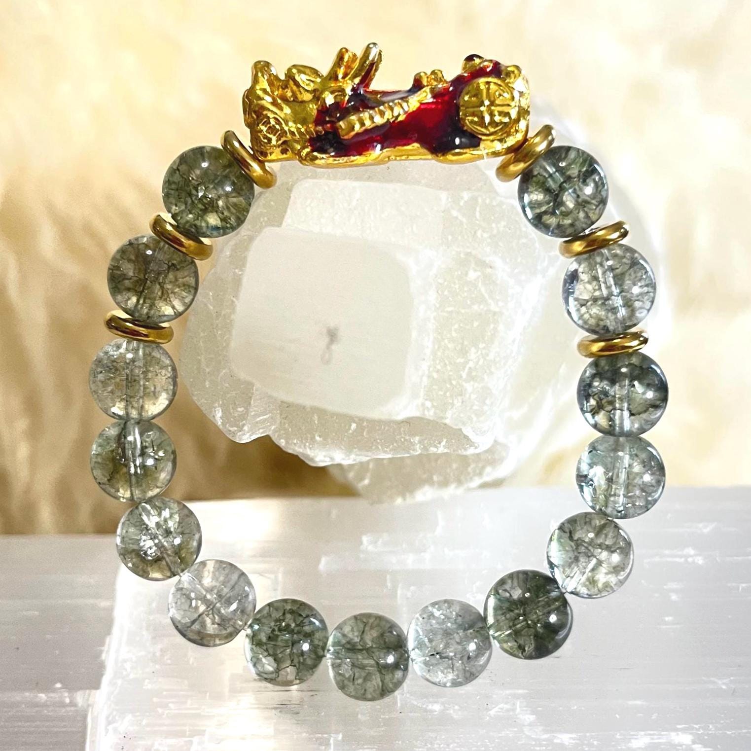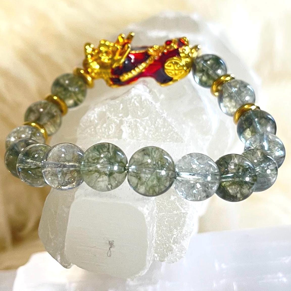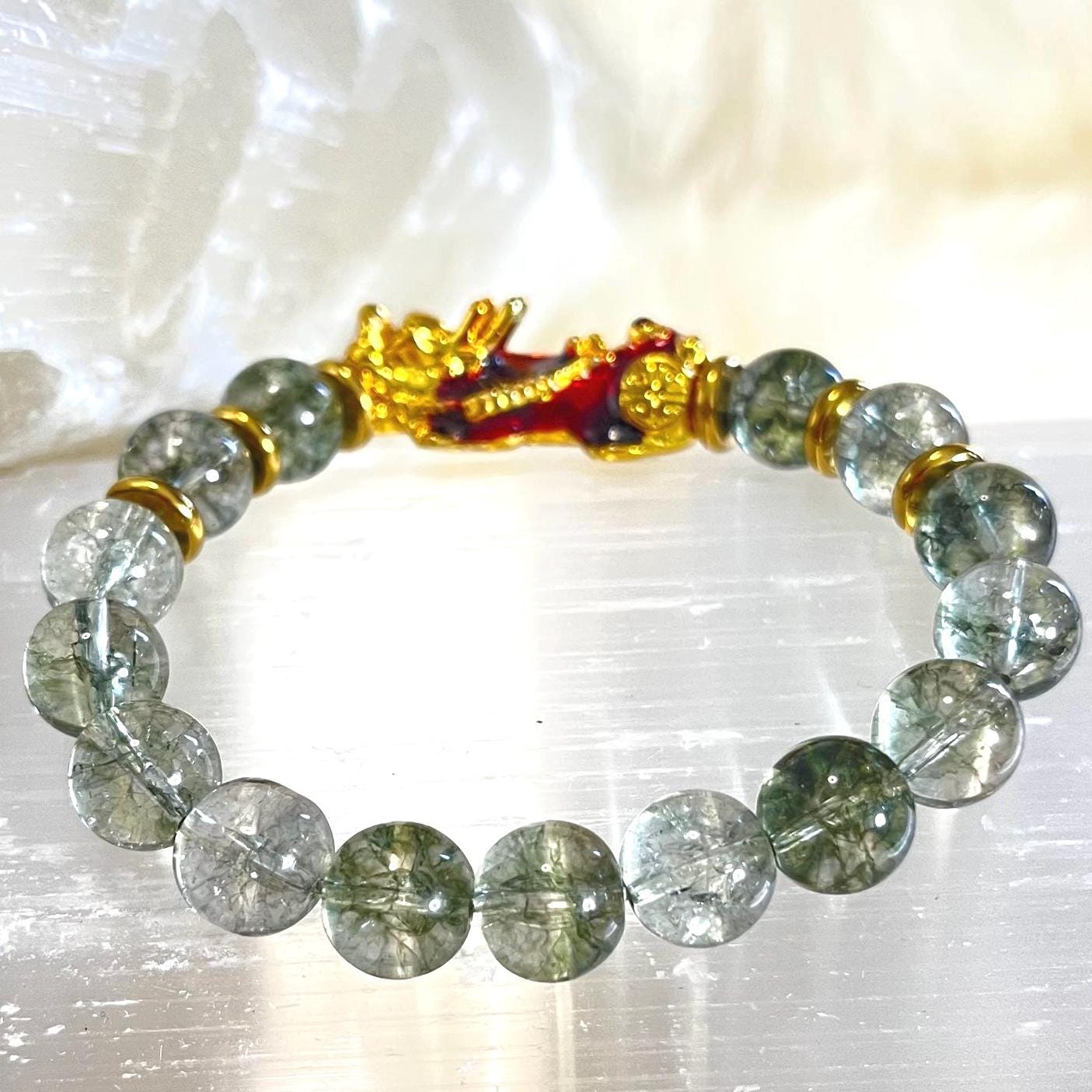 Phantom Quartz Pixiu Bracelet | Pixiu Wealth Bracelet | Feng Shui Money Bracelet | Gold Pixiu Charm Bracelet | Crystal Bracelet for Prosperity | Protection and Luck Jewelry | Healing Quartz Bracelet 10mm