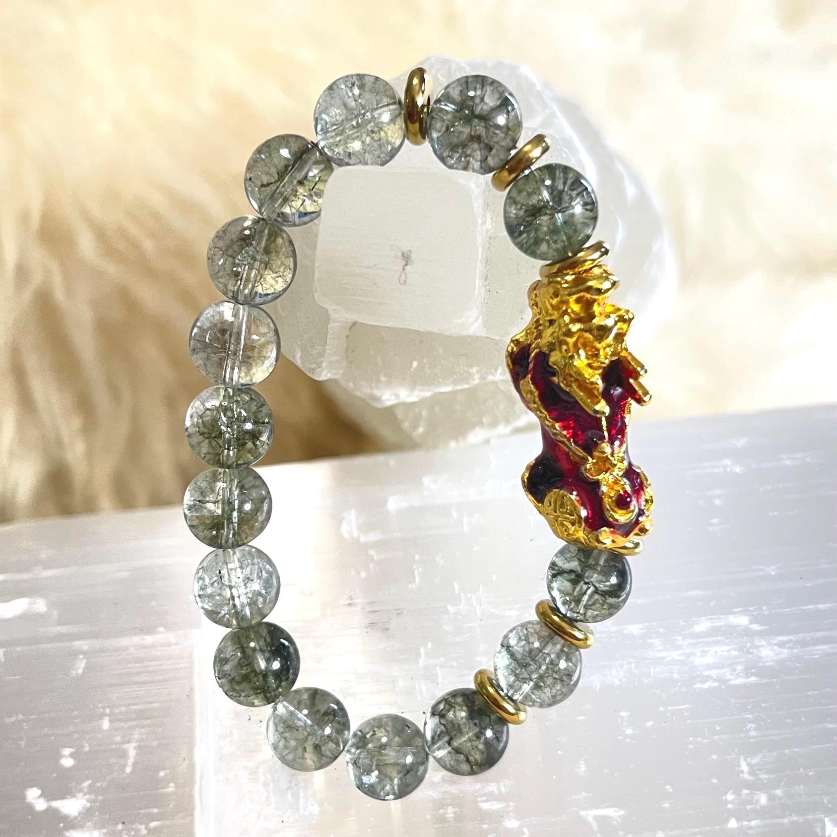Phantom Quartz Pixiu Bracelet 10mm – Gold Plated Wealth & Protection Talisman