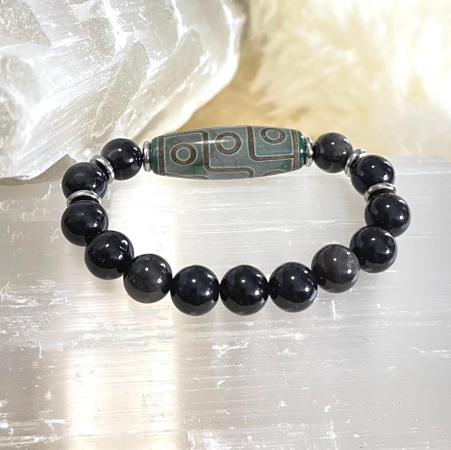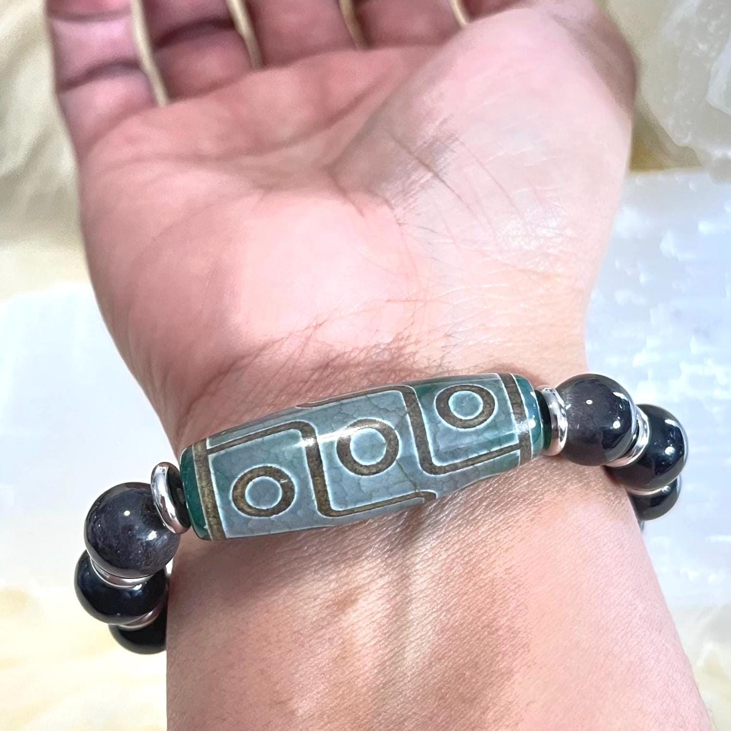 9 Eye Dzi Agate Bracelet with Obsidian – Powerful Protection & Grounding Energy (10mm Beads)